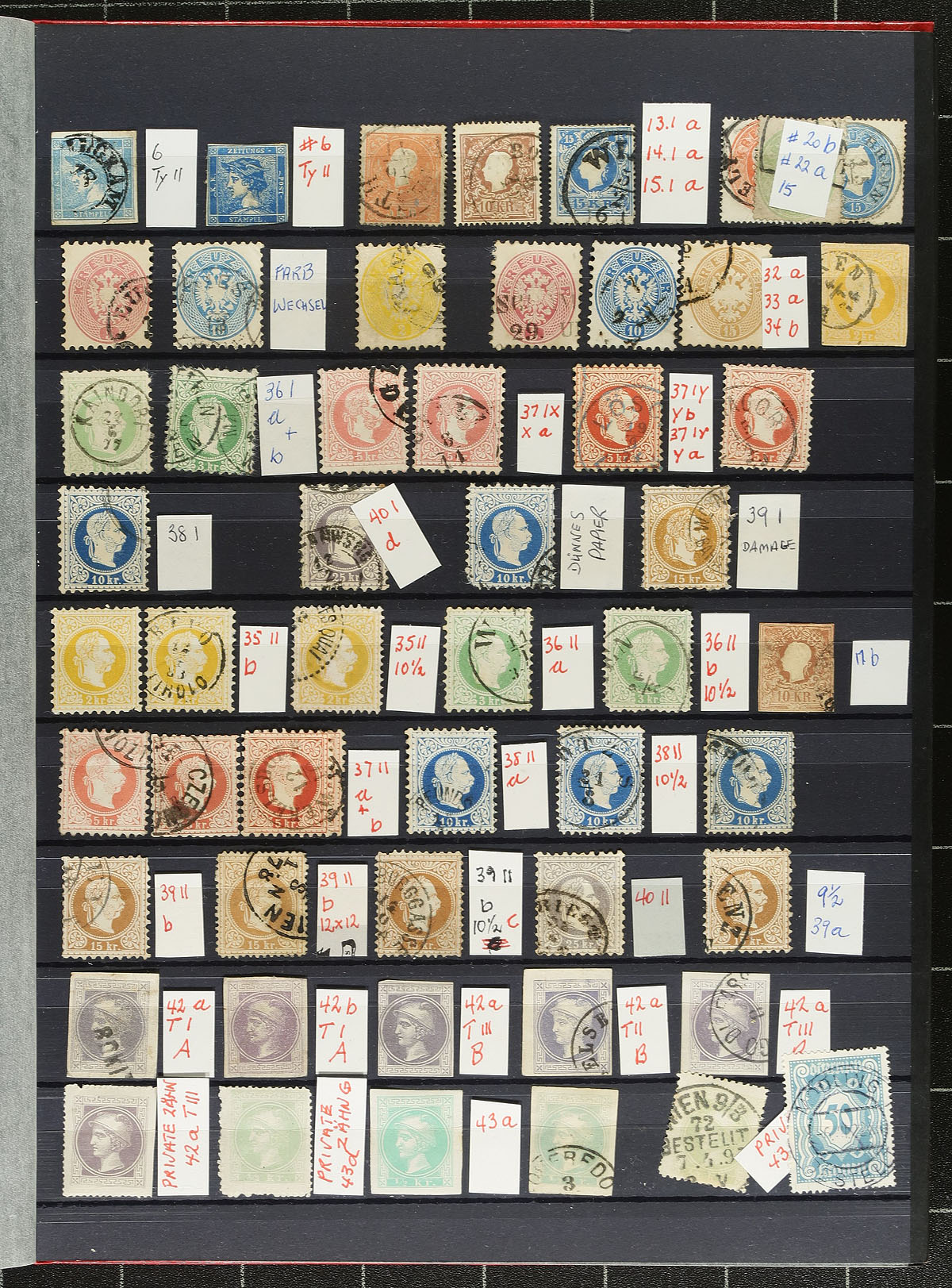 Nicely organized collection of mint and used Austria, 1851-1971, containing over 1,000 stamps in two well filled stockbooks. The collection generally ranges from Scott #9/905 (collection uses different catalogue numbers), including several mint and used sets, and back of the book issues. The first stockbook contains classic used from 1851 to roughly 1900, and continues with mint issues up to 1968, and the second stockbook contains used issues from 1915 to 1971. A spot check of material indicated some stamps and sets cataloguing in the $5 to $15 range, leaving better finds to the dedicated collector, including better postmarks, etc. A nice clean lot for collectors and dealers alike. Estimate =
