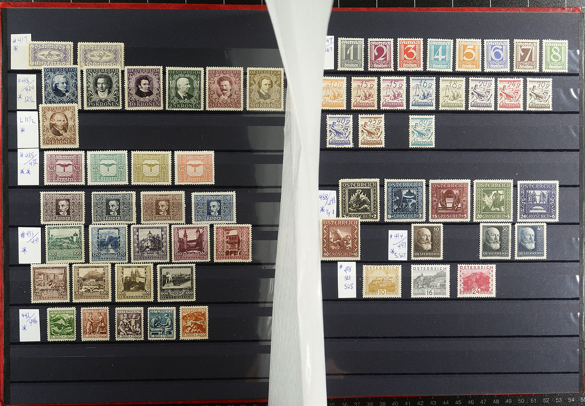 Nicely organized collection of mint and used Austria, 1851-1971, containing over 1,000 stamps in two well filled stockbooks. The collection generally ranges from Scott #9/905 (collection uses different catalogue numbers), including several mint and used sets, and back of the book issues. The first stockbook contains classic used from 1851 to roughly 1900, and continues with mint issues up to 1968, and the second stockbook contains used issues from 1915 to 1971. A spot check of material indicated some stamps and sets cataloguing in the $5 to $15 range, leaving better finds to the dedicated collector, including better postmarks, etc. A nice clean lot for collectors and dealers alike. Estimate =