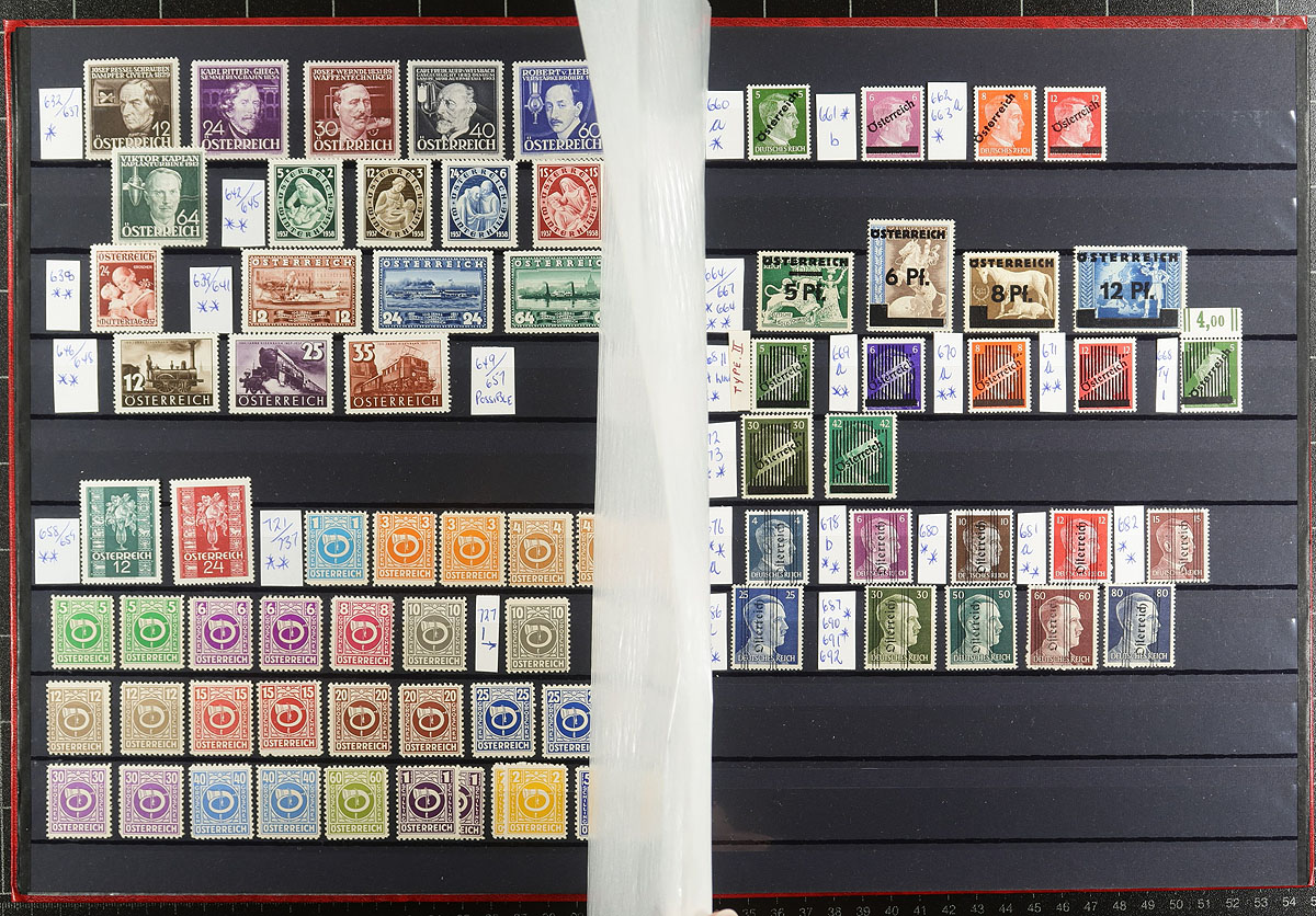Nicely organized collection of mint and used Austria, 1851-1971, containing over 1,000 stamps in two well filled stockbooks. The collection generally ranges from Scott #9/905 (collection uses different catalogue numbers), including several mint and used sets, and back of the book issues. The first stockbook contains classic used from 1851 to roughly 1900, and continues with mint issues up to 1968, and the second stockbook contains used issues from 1915 to 1971. A spot check of material indicated some stamps and sets cataloguing in the $5 to $15 range, leaving better finds to the dedicated collector, including better postmarks, etc. A nice clean lot for collectors and dealers alike. Estimate =