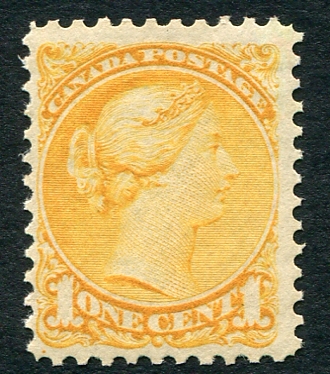 Fine/Very Fine mint, Never Hinged appearing, but regummed example of the 1c orange Small Queen in the scarce perf 11½ x 12. Sharp impression, great colour, valued as Hinged. 2026 Scott Classic $450.00 =