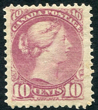 Fine+ mint hinged / disturbed original gum example of the 1880 issue 10c magenta Small Queen. Great vibrant colour. 2025 Scott US$1,275.00 =