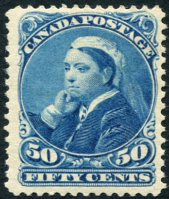 Fine mint Lightly-Hinged example of the 1893-1897 Queen Victoria 50c blue Widow Weeds issue. A very striking stamp, with great colour. 2026 Scott US$400.00 =