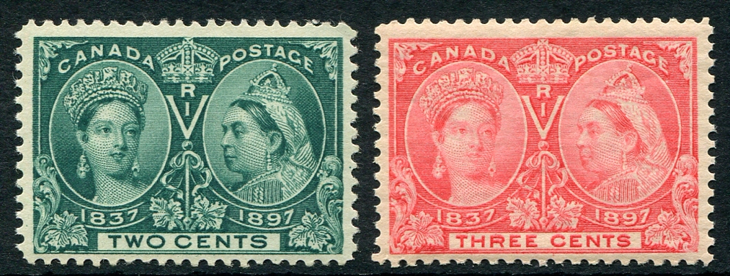 VF mint Never Hinged examples of the 2c green and 3c bright rose, Queen Victoria Jubilee stamps. A nice start to a Never Hinged set. 2026 Scott US$167.50 =