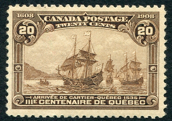 VF mint Never Hinged example of the 1908 issue 20c yellow brown Quebec Tercentenary "Champlain's Arrival" high value. Some gum bends, mentioned "for the record", but overall a great stamp. 2026 Scott US$625.00 =