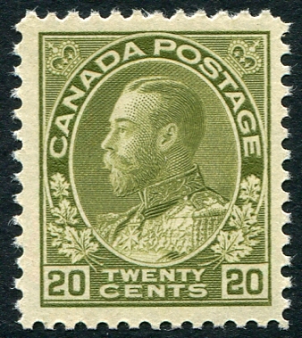 Fresh and F/VF mint Never Hinged example of the 20c olive green GeoV Admiral (dry printing). Great colour and pristine gum. 2026 Scott Classic US$290.00 =