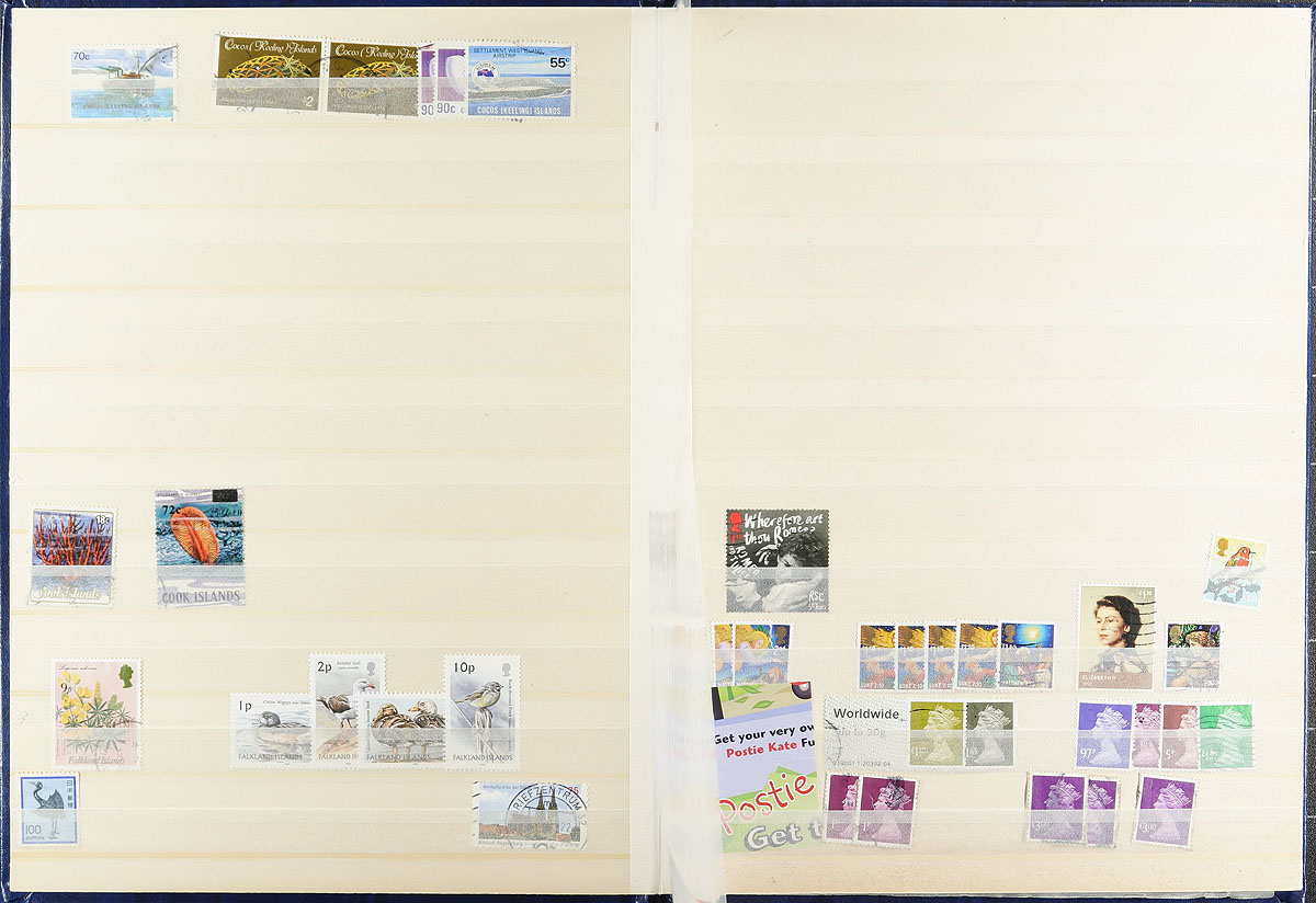 Collection of mint and used British Commonwealth issues, containing several hundreds of stamps neatly arranged in 2 stockbooks. We note better representation from Australia, Canada, and Tonga, with a few other regions (including bits of United States), with most of the singles, sets, booklets, and souvenir sheets appearing to be post 1990s issues for Australia and Canada, with more classic material from Tonga. A spot check indicated some material cataloguing $10 and up, with a likely $50 to $70 worth of face value Canada alone. A nice lot for all collectors, with all stamps photographed online. Estimate =