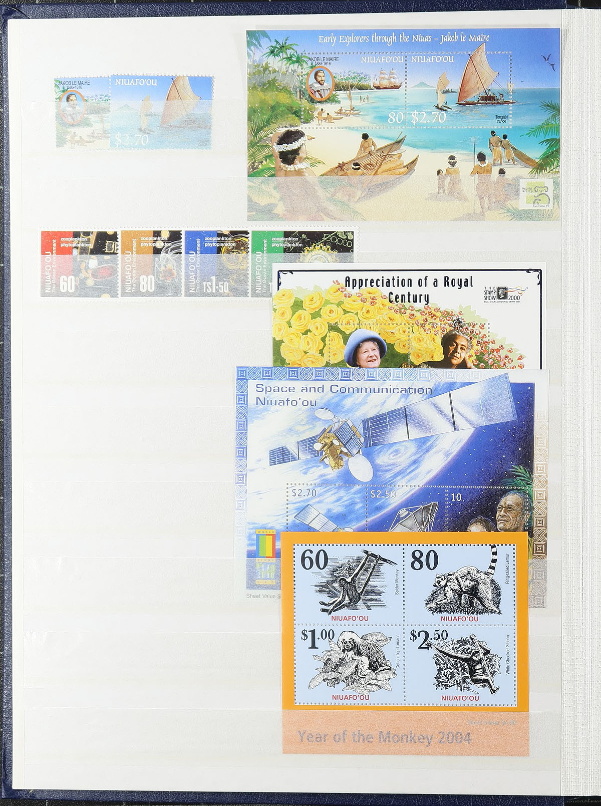 Collection of mint and used British Commonwealth issues, containing several hundreds of stamps neatly arranged in 2 stockbooks. We note better representation from Australia, Canada, and Tonga, with a few other regions (including bits of United States), with most of the singles, sets, booklets, and souvenir sheets appearing to be post 1990s issues for Australia and Canada, with more classic material from Tonga. A spot check indicated some material cataloguing $10 and up, with a likely $50 to $70 worth of face value Canada alone. A nice lot for all collectors, with all stamps photographed online. Estimate =