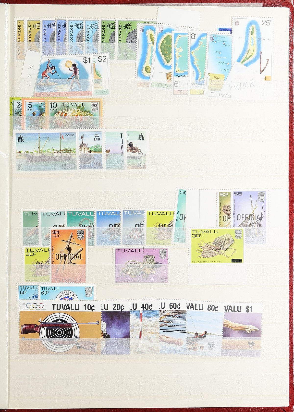 Collection of mint and used British Commonwealth issues, containing several hundreds of stamps neatly arranged in 2 stockbooks. We note representation from New Hebrides, New Guinea, Nauru, Tuvalu, and Vanuata, containing singles sets, and a few souvenir sheets, generally ranging from the 1900s onwards. A spot check indicated some material cataloguing $10 and up including New Hebrides #1 (c.v. $60), 31 ($125). A nice lot for all collectors, especially topical and thematic folks as we encountered several suitable subjects. Overall fine to very fine, with all stamps photographed online. Estimate =