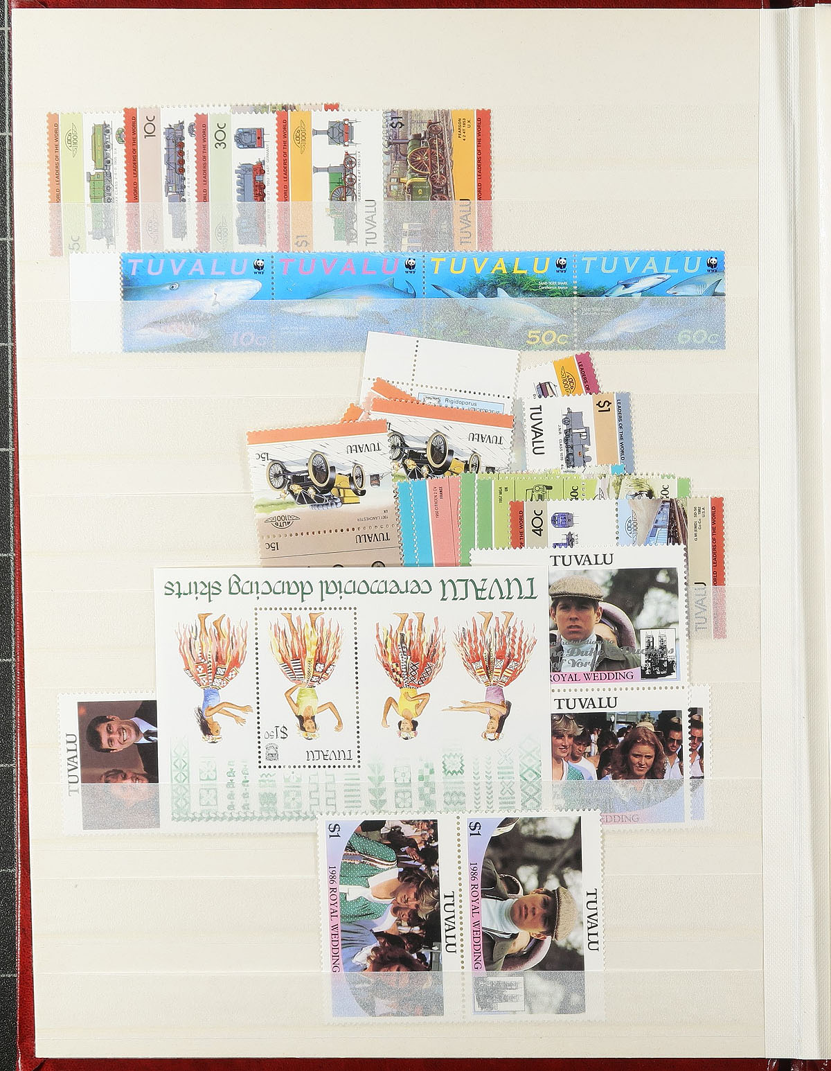 Collection of mint and used British Commonwealth issues, containing several hundreds of stamps neatly arranged in 2 stockbooks. We note representation from New Hebrides, New Guinea, Nauru, Tuvalu, and Vanuata, containing singles sets, and a few souvenir sheets, generally ranging from the 1900s onwards. A spot check indicated some material cataloguing $10 and up including New Hebrides #1 (c.v. $60), 31 ($125). A nice lot for all collectors, especially topical and thematic folks as we encountered several suitable subjects. Overall fine to very fine, with all stamps photographed online. Estimate =
