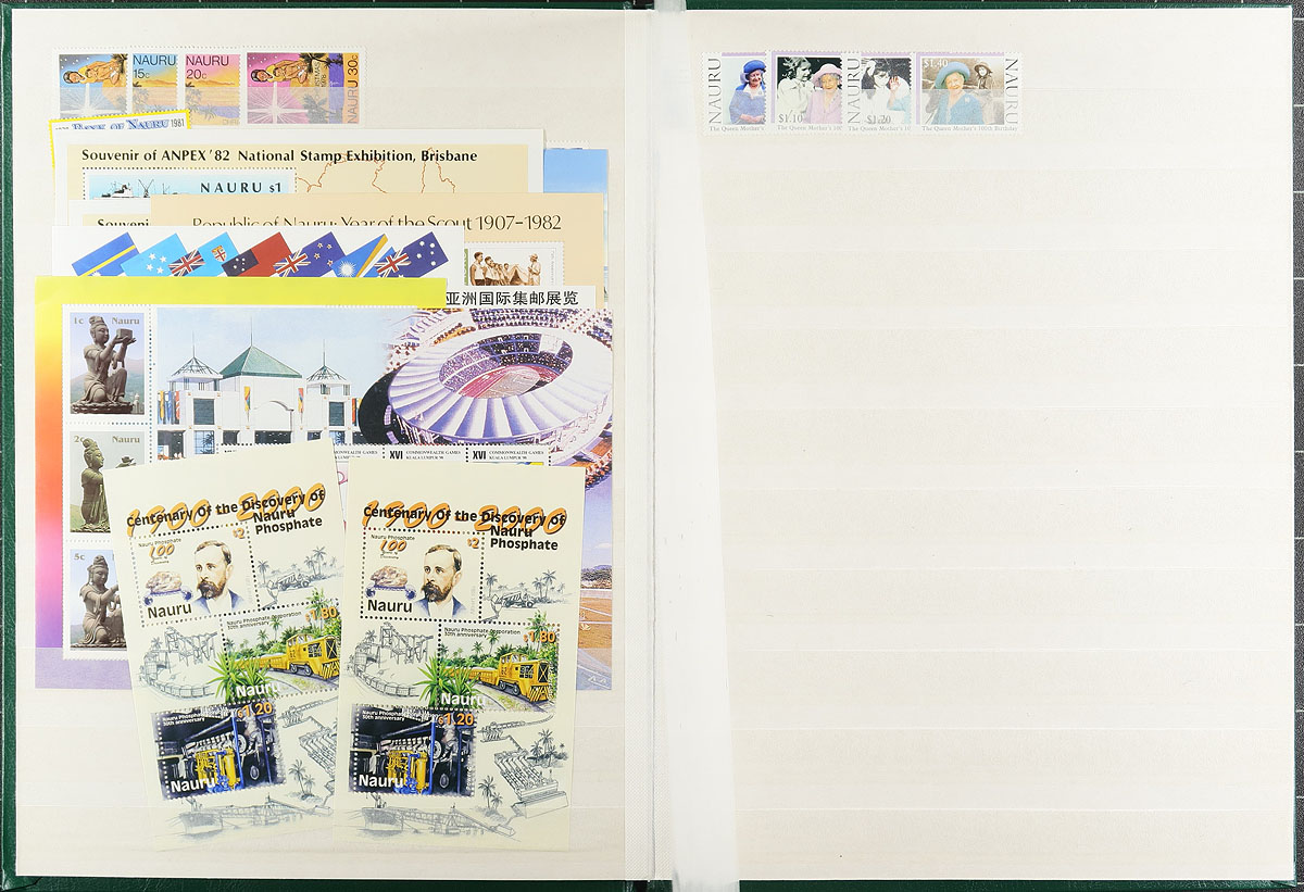 Collection of mint and used British Commonwealth issues, containing several hundreds of stamps neatly arranged in 2 stockbooks. We note representation from New Hebrides, New Guinea, Nauru, Tuvalu, and Vanuata, containing singles sets, and a few souvenir sheets, generally ranging from the 1900s onwards. A spot check indicated some material cataloguing $10 and up including New Hebrides #1 (c.v. $60), 31 ($125). A nice lot for all collectors, especially topical and thematic folks as we encountered several suitable subjects. Overall fine to very fine, with all stamps photographed online. Estimate =