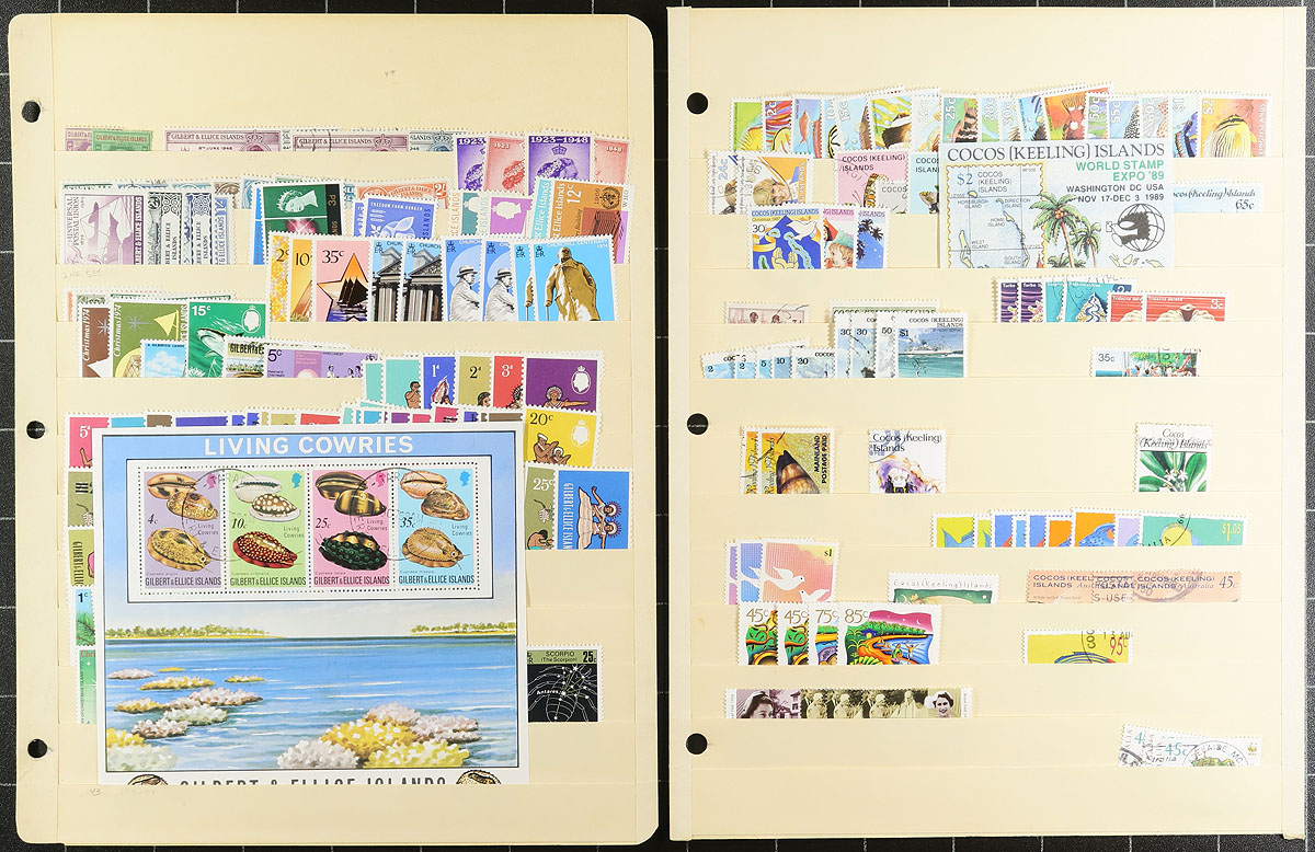 Lovely group of mint and used British Commonwealth material, 1900s-2000s, containing roughly 1,000 stamps in 16 well organized manila stock pages. We note roughly 7 different countries ranging from A to J, including Ascension, British Antarctic Territories, Christmas Island, Australian Antarctic Territory, Barbados, Gilbert and Ellice Islands and Jamaica, containing singles, sets, and souvenir sheets. A spot check indicated singles and sets cataloguing $10 to $30 and up each including Ascension #7 (mint with short perf at bottom), British Antarctic Territory#8-14 (used, $72.30 total), Barbados #216-227 (mh, $81.50 total), just to name a few. A lovely lot for all collectors, with all pages photographed online. Overall fine to very fine. Estimate =