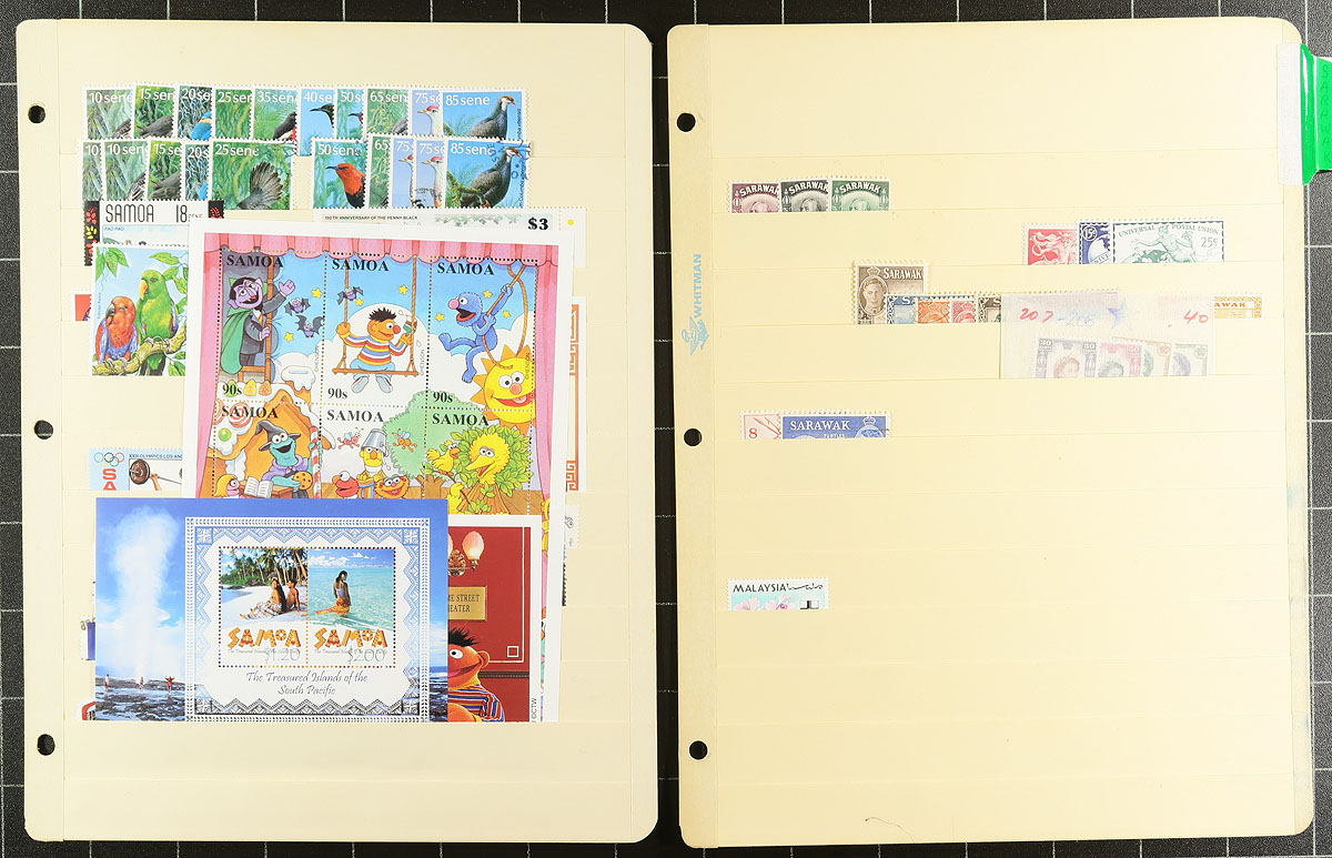Lovely group of mint and used British Commonwealth material, 1900's-1990's, containing roughly 1,000 stamps in 16 well organized manila stock pages. We note roughly 7 different countries ranging from P to T, including Pitcairn Islands, Samoa, Sarawak, Solomon Islands, Seychelles, St. Helena, and Tristan da Cunha, containing singles, sets, and souvenir sheets. A spot check indicated material cataloguing $10 to $30 and up each including Pitcairn Islands #1-8 (mh, $84.75), along with Omnibus sets and more. A lovely lot for all collectors, with all pages photographed online. Overall fine to very fine. Estimate =