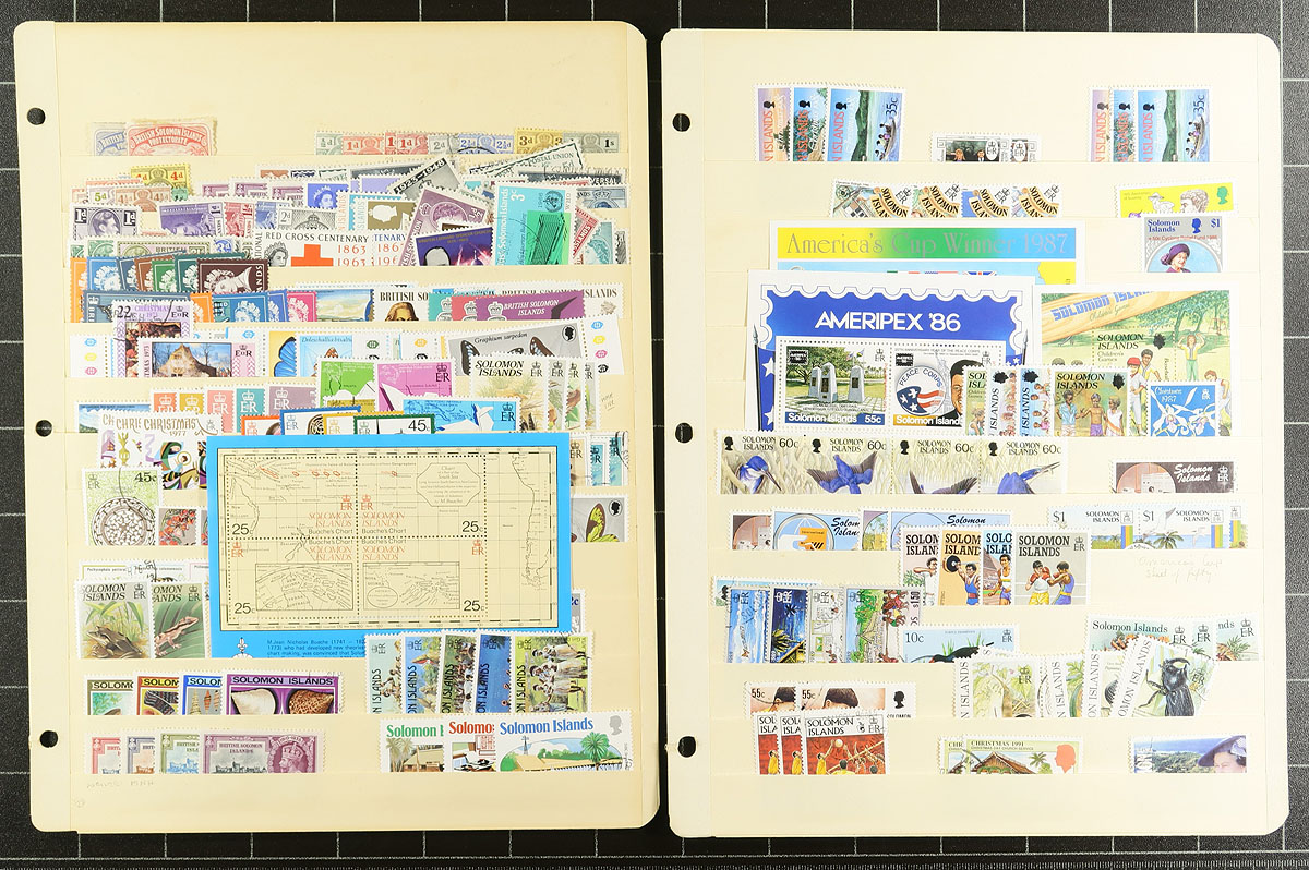 Lovely group of mint and used British Commonwealth material, 1900's-1990's, containing roughly 1,000 stamps in 16 well organized manila stock pages. We note roughly 7 different countries ranging from P to T, including Pitcairn Islands, Samoa, Sarawak, Solomon Islands, Seychelles, St. Helena, and Tristan da Cunha, containing singles, sets, and souvenir sheets. A spot check indicated material cataloguing $10 to $30 and up each including Pitcairn Islands #1-8 (mh, $84.75), along with Omnibus sets and more. A lovely lot for all collectors, with all pages photographed online. Overall fine to very fine. Estimate =