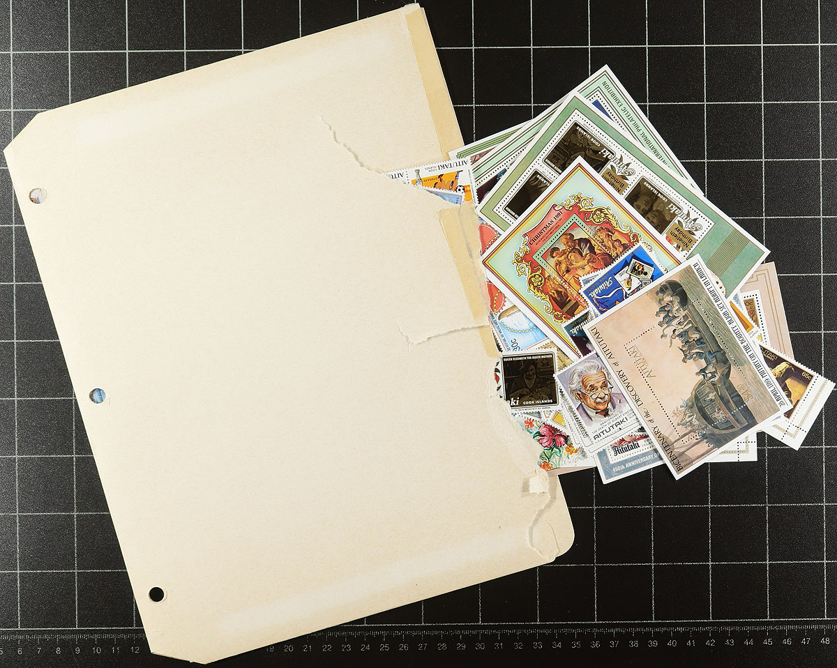 Consignment remainders of mint and used British Commonwealth material, containing many hundreds of items in a variety of formats. A spot check indicated mostly representation from Pacific or West Indies areas notably Cook Islands, Niue, Aitutaki, Penrhyn, just to name a few. The lot appears to contain material from the 1960's to the 1980's noting singles, sets, and several souvenir sheets, in a few stockbooks, and loose material in folders. We estimate several items in the $3 to $5 range, and encountered several suitable subjects for topical and thematic collectors, and should be worth our reasonable estimate. Estimate =