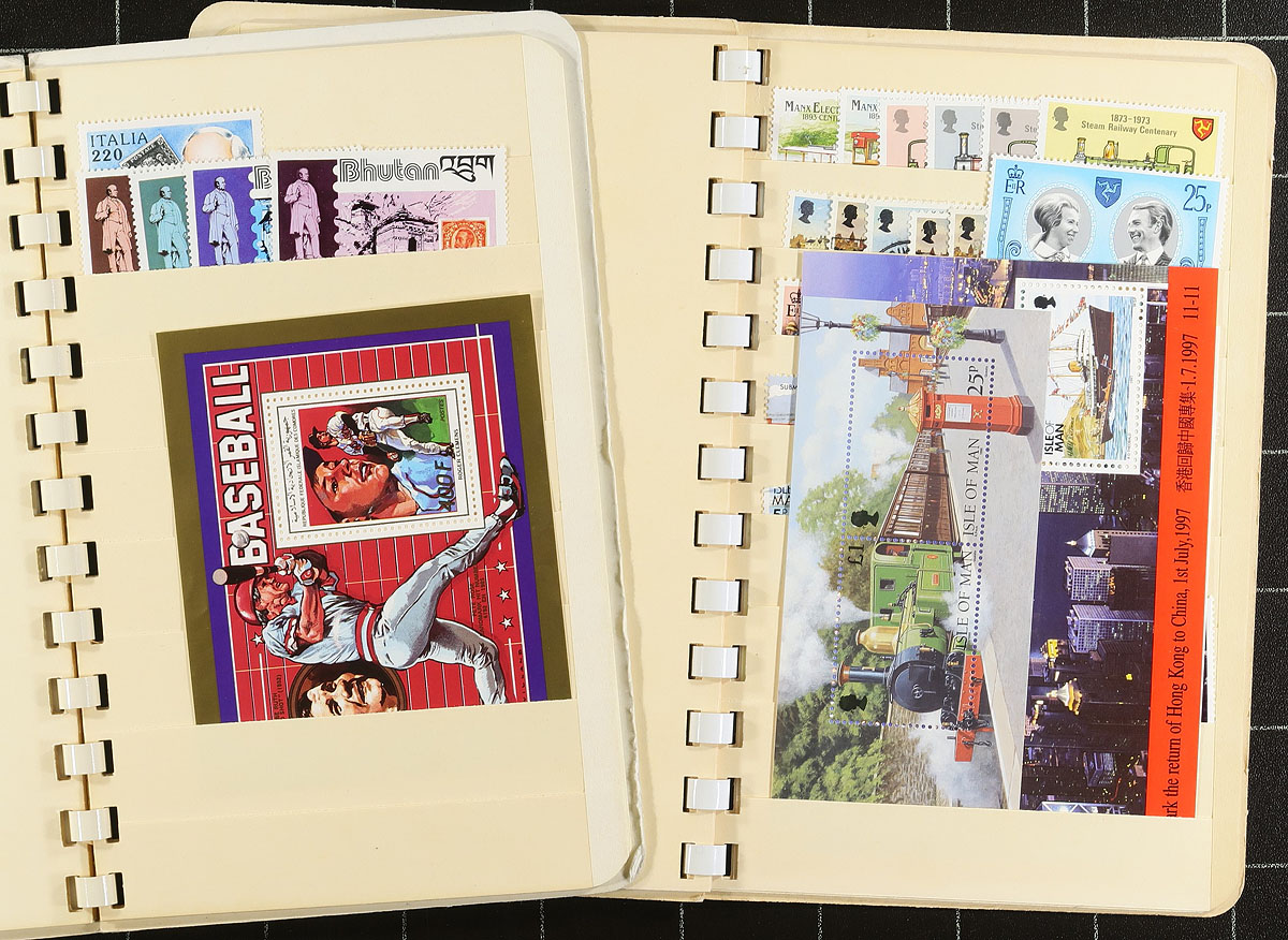 Consignment remainders of mint and used British Commonwealth material, containing many hundreds of items in a variety of formats. A spot check indicated mostly representation from Pacific or West Indies areas notably Cook Islands, Niue, Aitutaki, Penrhyn, just to name a few. The lot appears to contain material from the 1960's to the 1980's noting singles, sets, and several souvenir sheets, in a few stockbooks, and loose material in folders. We estimate several items in the $3 to $5 range, and encountered several suitable subjects for topical and thematic collectors, and should be worth our reasonable estimate. Estimate =