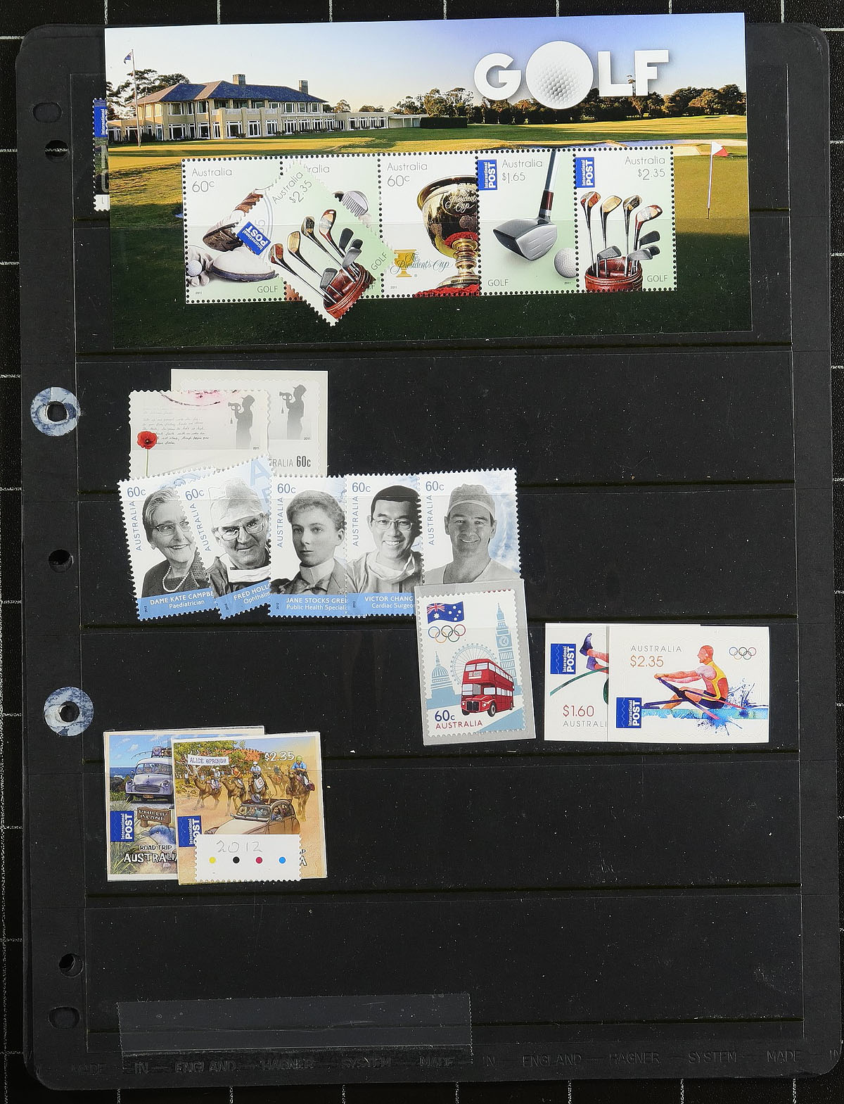 Nice collection of mint and used Australia, 1913-2012, containing many hundreds of stamps neatly arranged in a stockbook and a few manila stock pages. The lot generally ranges from Scott #1/3708, containing singles, sets, and a few souvenir sheets and sheetlets. The collection begins with a few used Kangaroos and a selection of KGV Heads, and continues with a mix of mint and or used issues including #s 127 (used), 178 (mh, x2), 179 (used, $85 total), 218-221 (mh, $253 total), along with singles and sets cataloguing $10 to $20 and up each. The modern mint is primarily never hinged and we estimate face value to be in the $200 to $300 range. A nice lot for the Australia or British Commonwealth collector with all pages photographed online. Estimate =