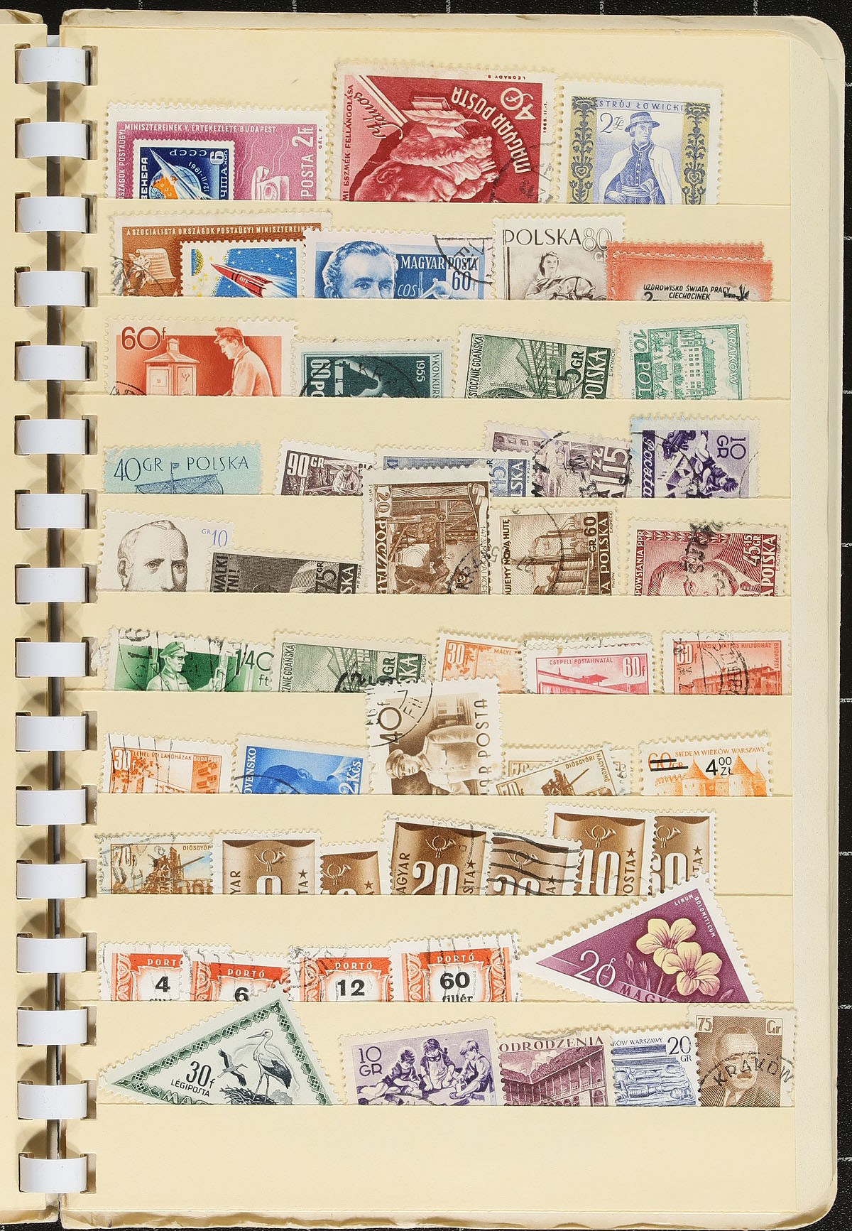 Accumulation of a few thousand worldwide stamps filling a banker box, 1900's-1980's. The lot is generally well organized despite the size noting several albums or stockbooks, along with several manila pages, noting better representation from European countries, Great Britain and British Commonwealth areas and more, with some material cataloguing $5 and up, leaving potential finds to the dedicated sorter, including better town postmarks. Overall fine to very fine. Estimate =