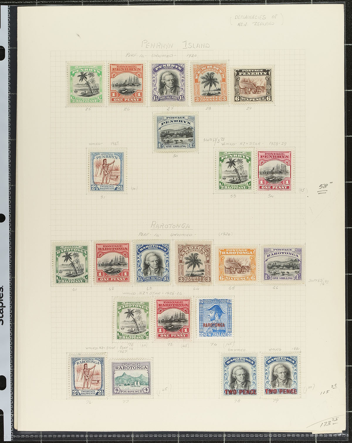 A very attractive group of Cook Islands (84 stamps), Niue (47 stamps), Tokelau Island (2 stamps), Ross Dependencies (5 stamps), Samoa (90 stamps), Penrhyn Island (9 stamps), Rarotonga (13 stamps), Christmas Island (25 stamps) and Cocos Island (11 stamps). All mint hinged on the original owner's pages, generally from the 1920's to 1960's period. 2026 Scott US$879.05 =