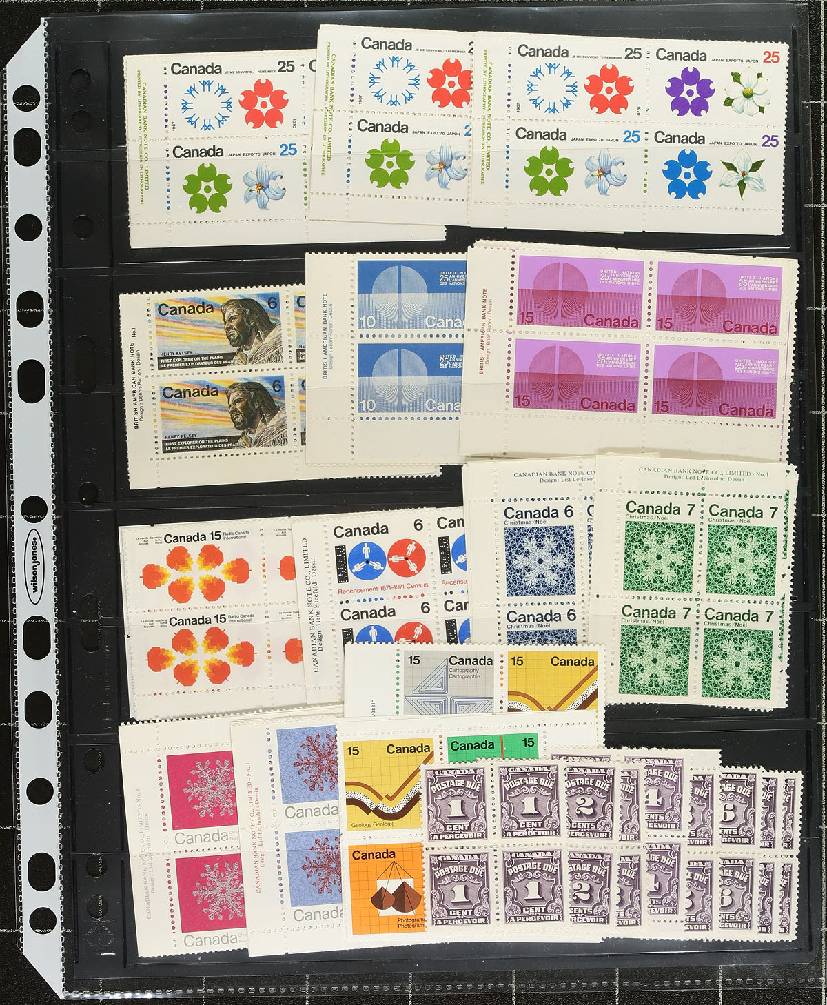 Mint Plate Block Collection. A well-organized offering of 195 blocks from the late George VI / early QEII era, neatly arranged on Vario brand stocksheets. A spot check showed some of the earlier blocks to be Hinged, but largely Never Hinged, especially in the QEII period. Includes the owner's inventory sheet (note, no NH premiums were added). 2025-2026 Unitrade