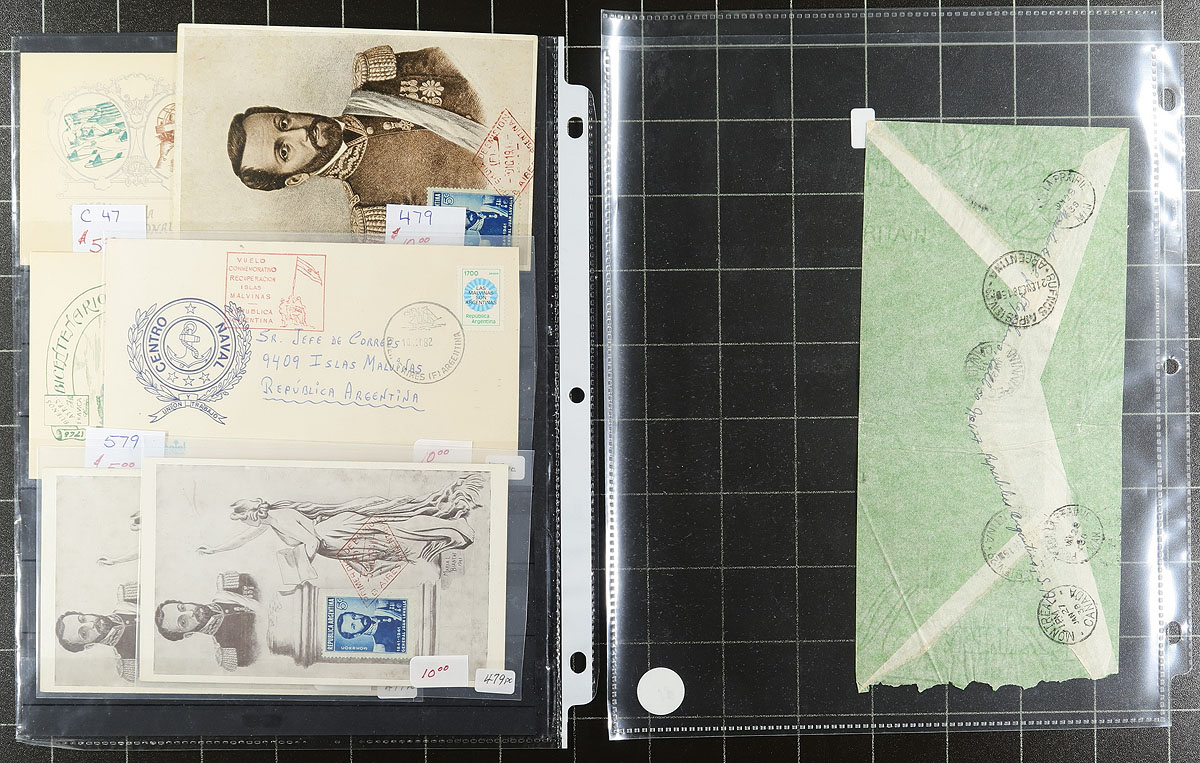 Nice grouping of Argentina material, 1920's-1940's, containing stamps and covers in 17 stock pages. There is a lot of interesting material here including singles, blocks, officials, varieties, along with several covers including airmail, first day covers, maximum cards, and likely more. Almost all the stamps and some of the covers have been identified along with accompanying retail values, generally ranging from $5 to $20 and up each. A really interesting lot for the worldwide collector or specialist, overall fine to very fine. Estimate =