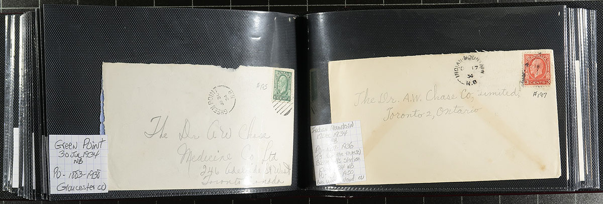 New Brunswick Postal History. A lovely collection of 91x George V / George VI covers, neatly arranged in a like-new Lighthouse brand cover album. Primarily split ring postmarks, but we did note the odd duplex cancels. Quality of strikes is well above-average. Estimate =
