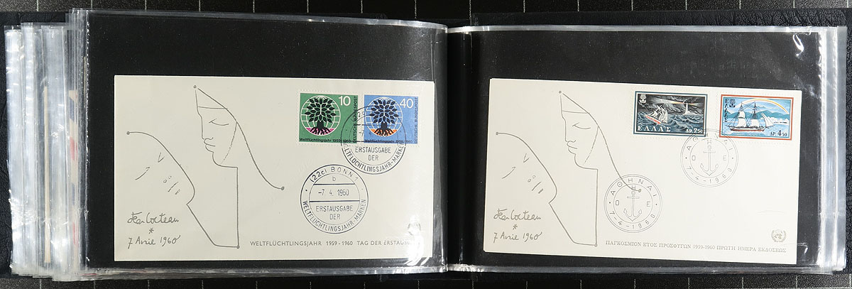 A group of Canada and Worldwide Covers, with roughly 200 primarily Canada covers, 1890's-1970's, neatly organized in 3 volumes. We note a wide variety of items including a few stampless and Small Queen covers, military mail (including various censor tapes and field post offices), first day covers, first flight covers, postcards, and more, with the roughly 40 worldwide covers containing the same type of material. Many of the items have been identified and priced (either retail or catalogue value), ranging from $5 to $20 and up each. A nice lot for cover collectors and dealers alike, overall fine to very fine. Estimate =
