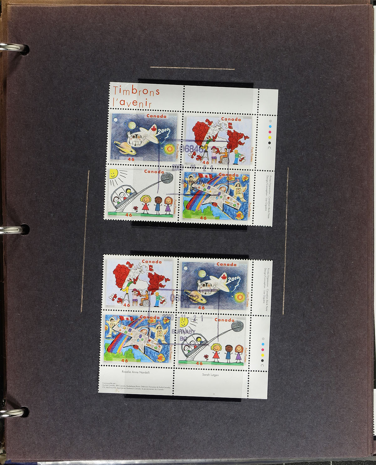 In-depth collection of primarily mint never hinged Canada, from June to December of 2000, covering Unitrade #s 1858-1872, 1876-1881 all in hingeless mounts in over 50 well described pages, housed in a thick binder. The collection contains mint and used singles (including booklet stamps), multiples, matched set of plate blocks (including used sets), for most issues, along with a definitive issues, few souvenir sheets (mint and used), sheetlets, booklets (including used booklet panes), and first day covers. We note several match sets cataloguing $10.00 and up. Face value alone totals $222.00. A nice comprehensive collection that would be difficult to duplicate. 2024 Unitrade =