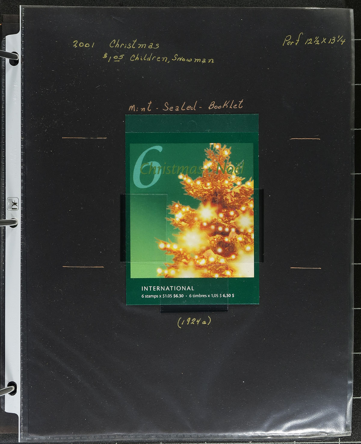Highly specialized collection of Christmas 2001 issues, covering Unitrade #s 1922-1924, all in hingeless mounts on over 50 well described pages, housed in a binder. The collection contains mint and used singles (including booklet stamps), matched set of mint and used plate blocks, booklets, used booklet panes, and a full mint and used sheet, for every issue. The collection also includes 25 first day covers (single and block frankings), with one official cover for each issue, with the rest receiving Burnaby, B.C. postmarks from various postal outlets. Face value alone totals $146.00. A lovely collection that would be difficult to duplicate. 2024 Unitrade =