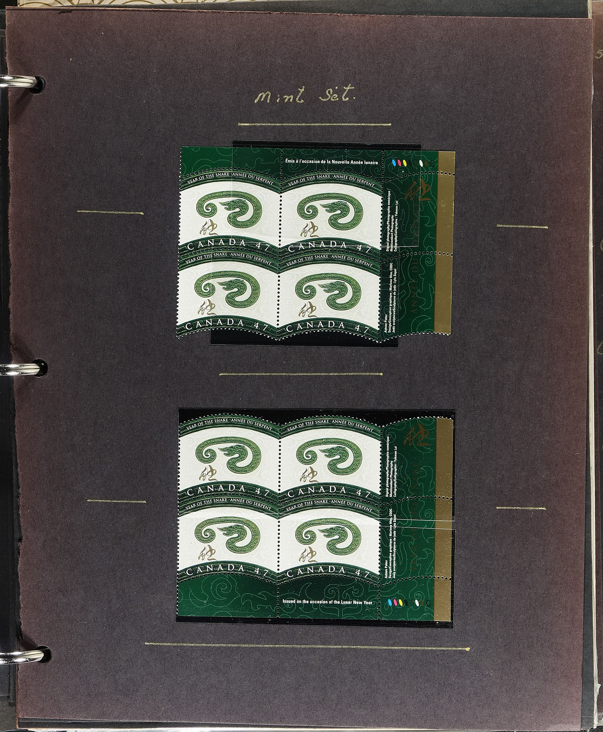 In-depth collection of primarily mint never hinged Canada, from January to June of 2001, covering Unitrade #s 1883-1906, all in hingeless mounts in over 50 well described pages, housed in a thick binder. The collection contains mint and used singles (including booklet stamps), multiples, matched set of plate blocks (including used sets), for most issues, along with a definitive issues, few souvenir sheets and sheetlets (mint and used), booklets (including used booklet panes), and first day covers. We note several match sets cataloguing $10.00 and up. Face value alone totals $229.00 A nice comprehensive collection that would be difficult to duplicate. 2024 Unitrade =