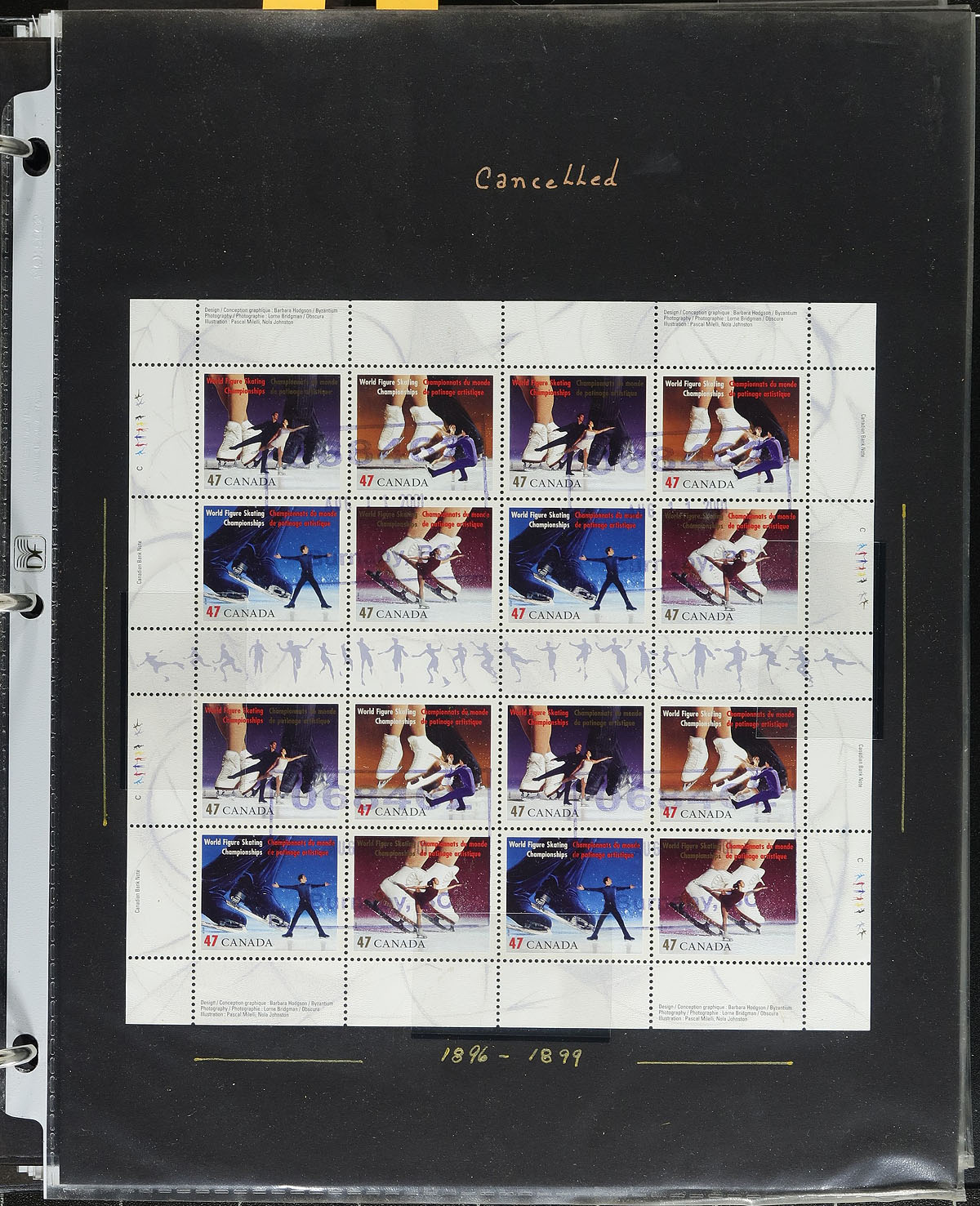 In-depth collection of primarily mint never hinged Canada, from January to June of 2001, covering Unitrade #s 1883-1906, all in hingeless mounts in over 50 well described pages, housed in a thick binder. The collection contains mint and used singles (including booklet stamps), multiples, matched set of plate blocks (including used sets), for most issues, along with a definitive issues, few souvenir sheets and sheetlets (mint and used), booklets (including used booklet panes), and first day covers. We note several match sets cataloguing $10.00 and up. Face value alone totals $229.00 A nice comprehensive collection that would be difficult to duplicate. 2024 Unitrade =