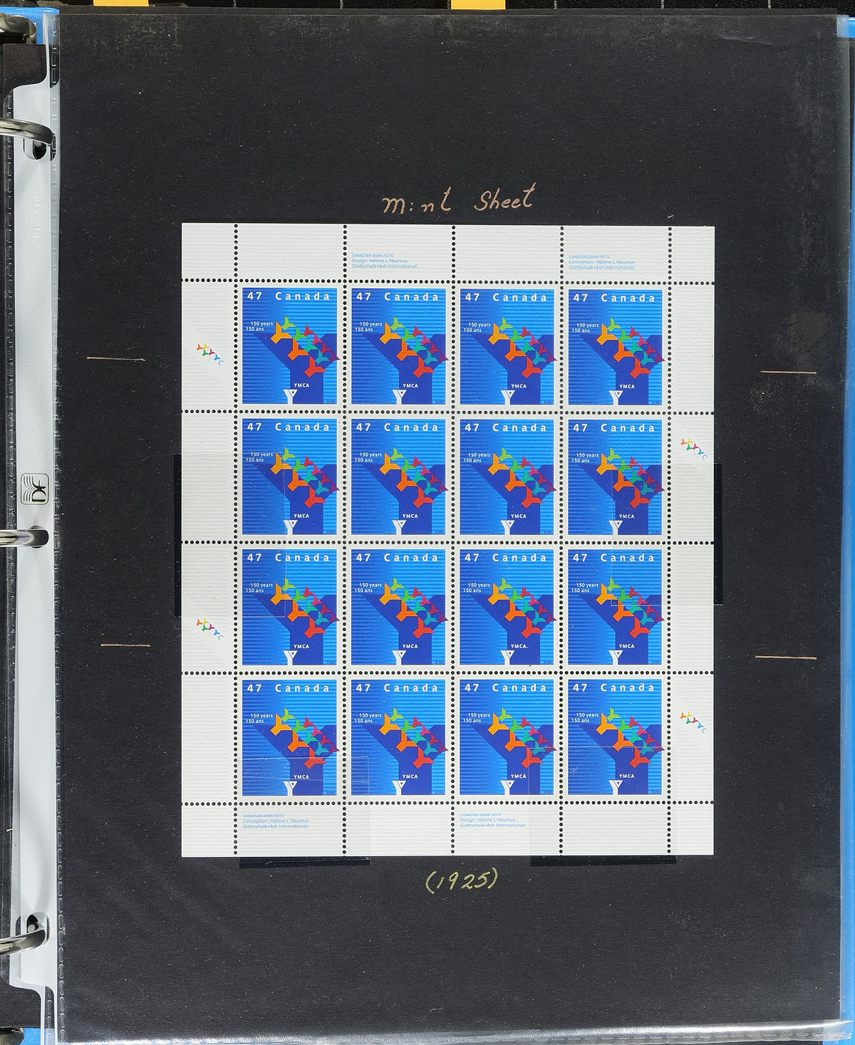 In-depth collection of primarily mint never hinged Canada, from June to December of 2001, covering Unitrade #s 1907-1926, all in hingeless mounts in over 50 well described pages, housed in a thick binder. The collection contains mint and used singles (including booklet stamps), multiples, matched set of plate blocks (including used sets), for most issues, along with a definitive issues, few souvenir sheets and sheetlets (mint and used), booklets (including used booklet panes), and first day covers. We note several match sets cataloguing $10.00 and up. Face value alone totals $211.00. A nice comprehensive collection that would be difficult to duplicate. 2024 Unitrade =