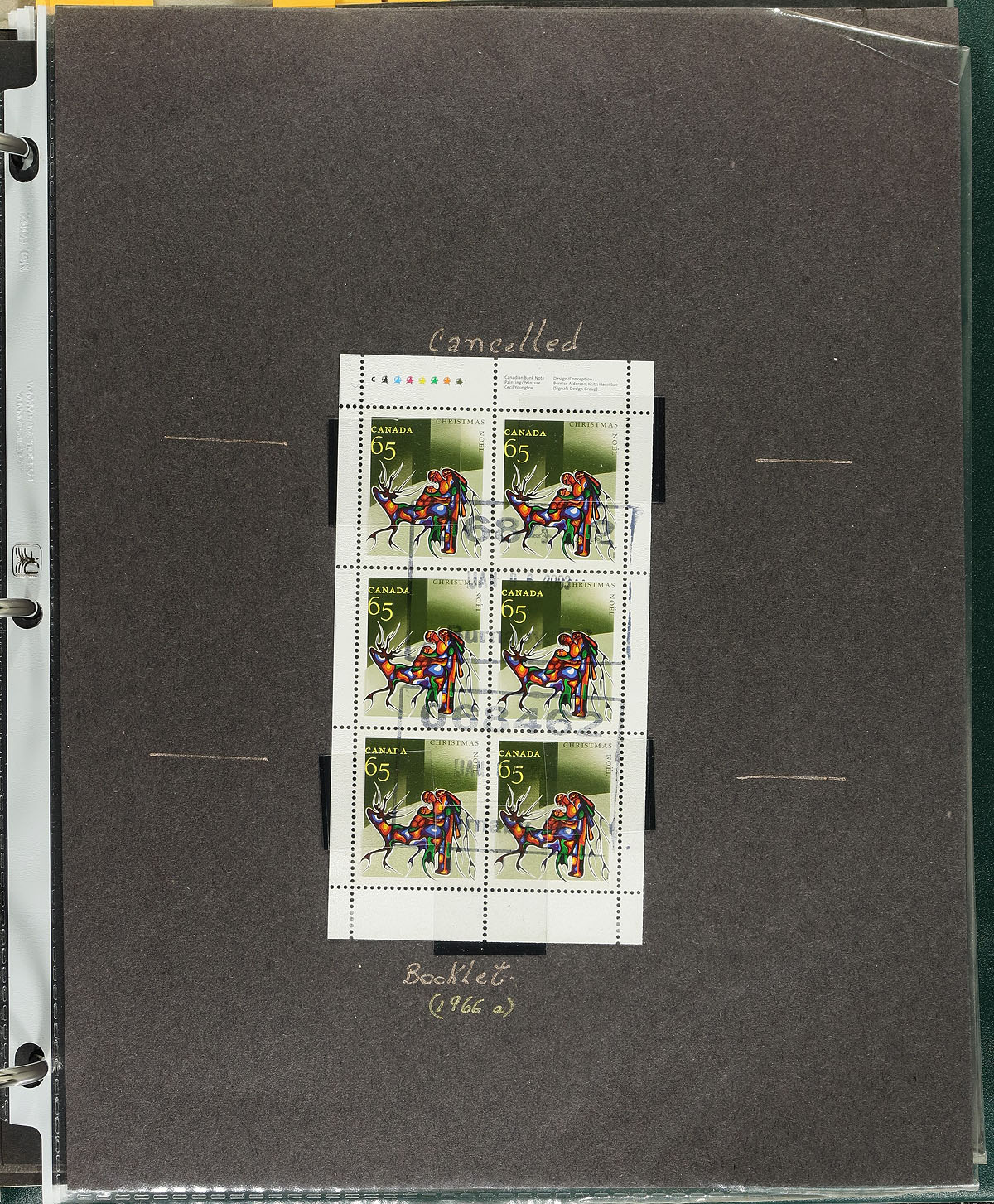 Highly specialized collection of Christmas 2002 issues, covering Unitrade #s 1965-1967, all in hingeless mounts on over 50 well described pages, housed in a binder. The collection contains mint and used singles (including booklet stamps), matched set of mint and used plate blocks, booklets, used booklet panes, and a full mint and used sheet, for every issue. The collection also includes 18 first day covers (single and block frankings), with one official cover for the set, with the rest receiving Burnaby, B.C. postmarks from various postal outlets. Face value alone totals $163.00. A lovely collection that would be difficult to duplicate. 2024 Unitrade =