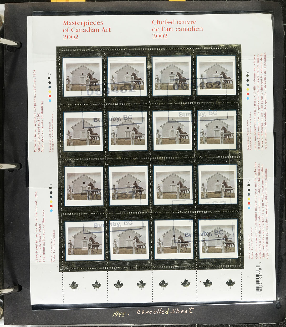 In-depth collection of primarily mint never hinged Canada, from January to May of 2002, covering Unitrade #s 1936-1951, all in hingeless mounts in over 50 well described pages, housed in a thick binder. The collection contains mint and used singles (including booklet stamps), multiples, matched set of plate blocks (including used sets), for most issues, along with a definitive issues, few souvenir sheets and sheetlets (mint and used), booklets (including used booklet panes), and first day covers. We note several match sets cataloguing $10.00 and up. Face value alone totals $180.00. A nice comprehensive collection that would be difficult to duplicate. 2024 Unitrade =