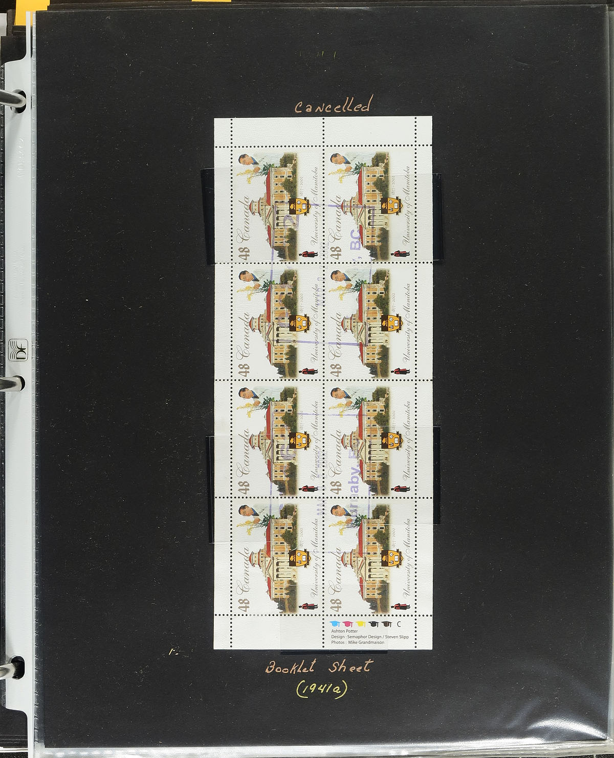 In-depth collection of primarily mint never hinged Canada, from January to May of 2002, covering Unitrade #s 1936-1951, all in hingeless mounts in over 50 well described pages, housed in a thick binder. The collection contains mint and used singles (including booklet stamps), multiples, matched set of plate blocks (including used sets), for most issues, along with a definitive issues, few souvenir sheets and sheetlets (mint and used), booklets (including used booklet panes), and first day covers. We note several match sets cataloguing $10.00 and up. Face value alone totals $180.00. A nice comprehensive collection that would be difficult to duplicate. 2024 Unitrade =