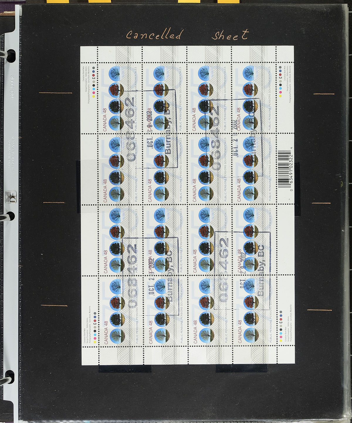 In-depth collection of primarily mint never hinged Canada, from January to June of 2001, covering Unitrade #s 1952-1964, 1968, all in hingeless mounts in over 50 well described pages, housed in a thick binder. The collection contains mint and used singles (including booklet stamps), multiples, matched set of plate blocks (including used sets), for most issues, along with a definitive issues, few souvenir sheets and sheetlets (mint and used), booklets (including used booklet panes), and first day covers. We note several match sets cataloguing $10.00 and up. Face value alone totals $197.00. A nice comprehensive collection that would be difficult to duplicate. 2024 Unitrade =