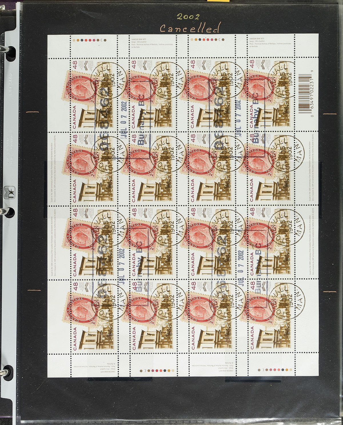 In-depth collection of primarily mint never hinged Canada, from January to June of 2001, covering Unitrade #s 1952-1964, 1968, all in hingeless mounts in over 50 well described pages, housed in a thick binder. The collection contains mint and used singles (including booklet stamps), multiples, matched set of plate blocks (including used sets), for most issues, along with a definitive issues, few souvenir sheets and sheetlets (mint and used), booklets (including used booklet panes), and first day covers. We note several match sets cataloguing $10.00 and up. Face value alone totals $197.00. A nice comprehensive collection that would be difficult to duplicate. 2024 Unitrade =
