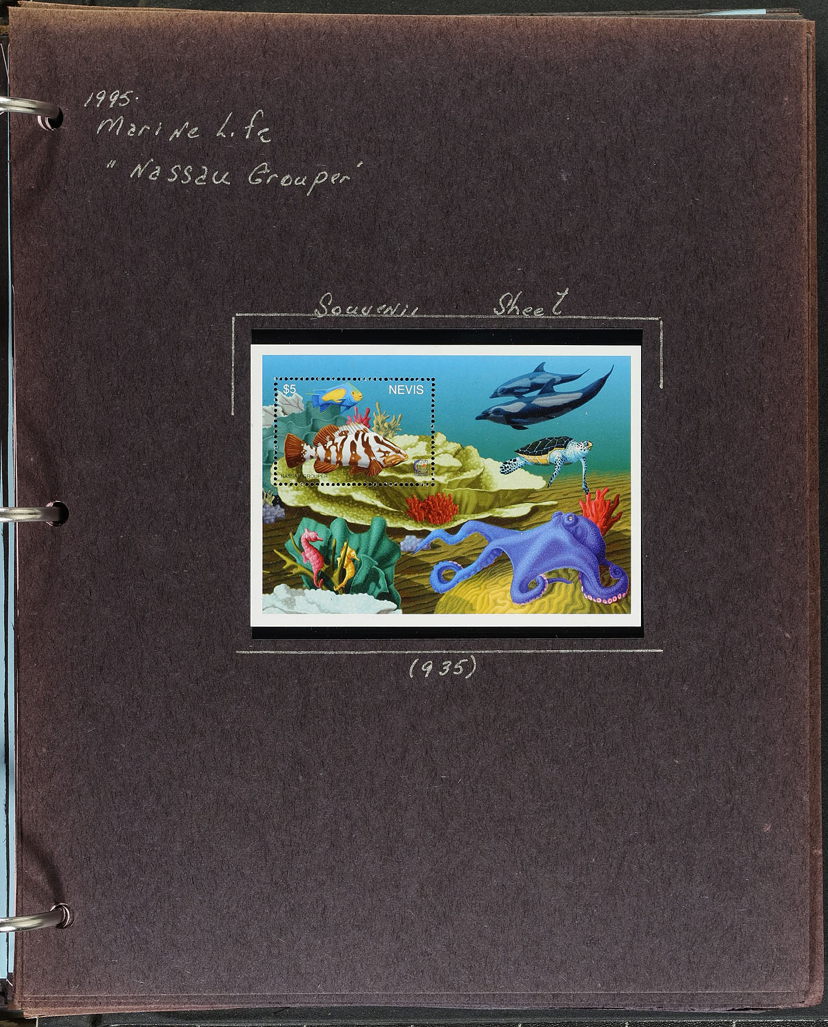 Collection Part A. Lovely mint never hinged collection of Nevis, 1980-2005, containing a few thousand stamps all in hingeless mounts, on a few hundred well described pages housed in 7 binders. This well-organized collection ranges from Scott #100/1468, including over 200 souvenir sheets and or sheetlets, along with Offcials O1-O66, noting a few sets and souvenir sheets cataloguing in the $10.00 to $25.00 range each. A nice opportunity for all collectors, including many thematic subjects noting sports, transportation, famous people, animals, butterflies, space, entertainers, and so much more. Our online photos show a small sampling, overall fine to very fine. 2025 Scott $3,081.00 =
