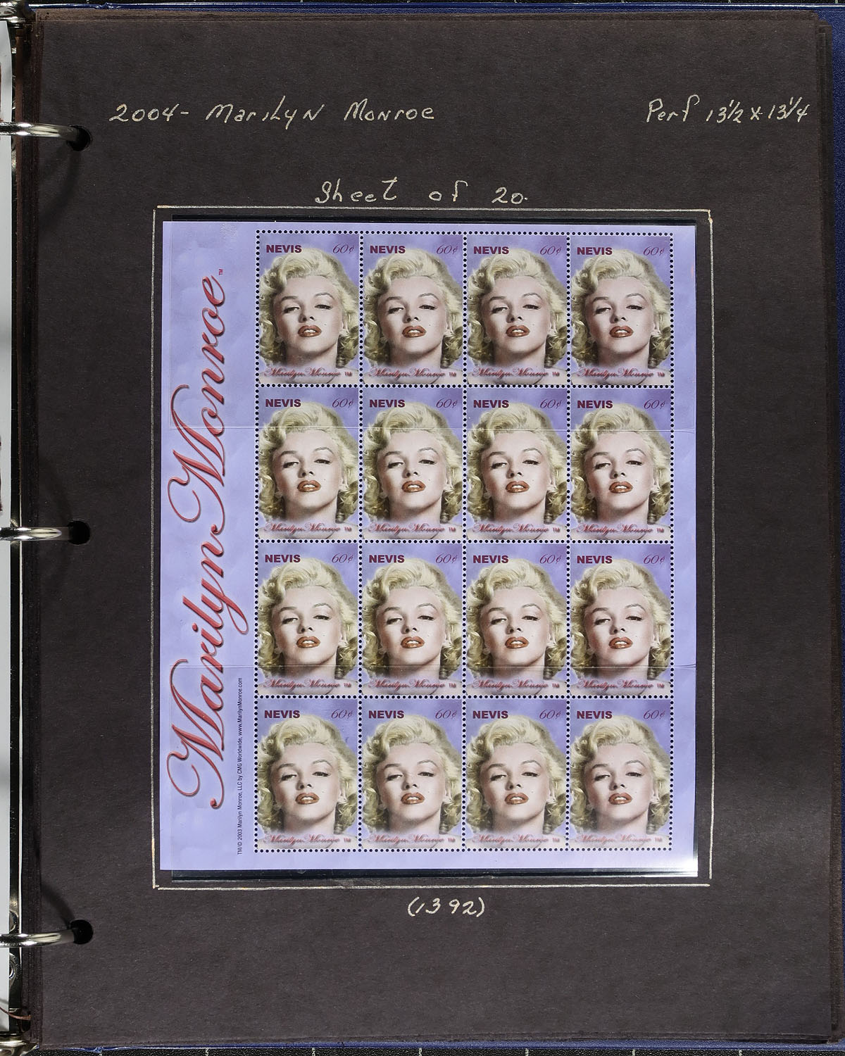 Collection Part A. Lovely mint never hinged collection of Nevis, 1980-2005, containing a few thousand stamps all in hingeless mounts, on a few hundred well described pages housed in 7 binders. This well-organized collection ranges from Scott #100/1468, including over 200 souvenir sheets and or sheetlets, along with Offcials O1-O66, noting a few sets and souvenir sheets cataloguing in the $10.00 to $25.00 range each. A nice opportunity for all collectors, including many thematic subjects noting sports, transportation, famous people, animals, butterflies, space, entertainers, and so much more. Our online photos show a small sampling, overall fine to very fine. 2025 Scott $3,081.00 =