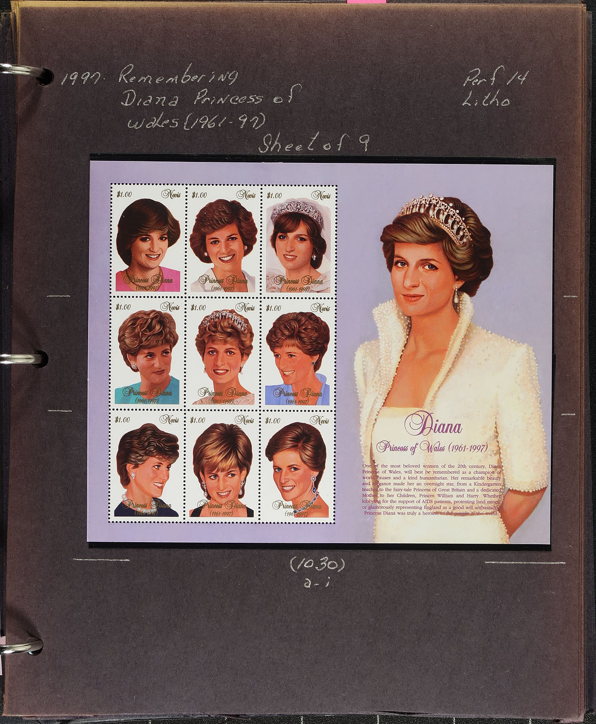 Collection Part A. Lovely mint never hinged collection of Nevis, 1980-2005, containing a few thousand stamps all in hingeless mounts, on a few hundred well described pages housed in 7 binders. This well-organized collection ranges from Scott #100/1468, including over 200 souvenir sheets and or sheetlets, along with Offcials O1-O66, noting a few sets and souvenir sheets cataloguing in the $10.00 to $25.00 range each. A nice opportunity for all collectors, including many thematic subjects noting sports, transportation, famous people, animals, butterflies, space, entertainers, and so much more. Our online photos show a small sampling, overall fine to very fine. 2025 Scott $3,081.00 =