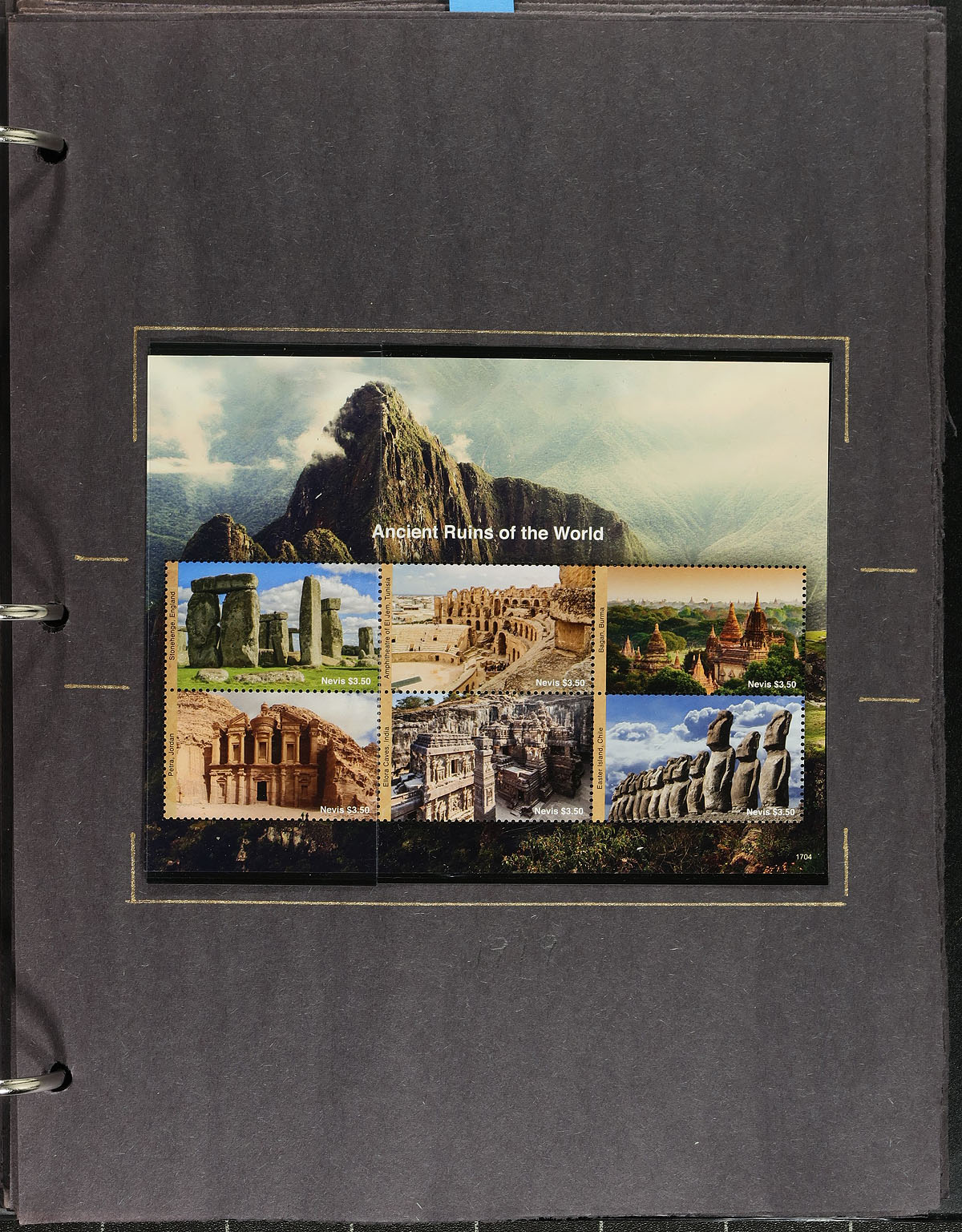Collection Part B. Lovely mint never hinged collection of Nevis, 2006-2018, containing many hundreds of stamps all in hingeless mounts, on a few hundred well described pages housed in 4 binders. This well-organized collection ranges from Scott #1473/1967, including over 120 souvenir sheets and or sheetlets, noting a few sets and souvenir sheets cataloguing in the $10.00 to $25.00 range each. A nice opportunity for all collectors, including many thematic subjects noting sports, transportation, famous people, animals, butterflies, space, entertainers, and so much more. Our online photos show a small sampling, overall fine to very fine. 2025 Scott US$2,974.00 =