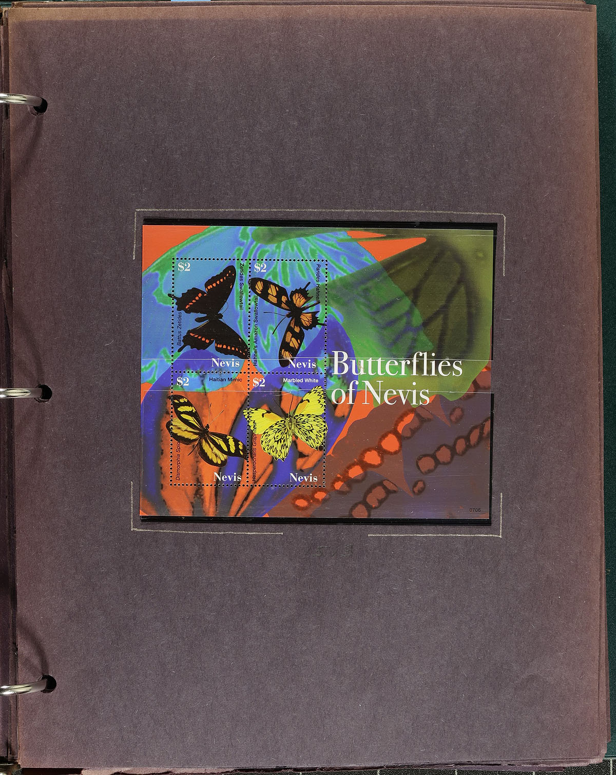 Collection Part B. Lovely mint never hinged collection of Nevis, 2006-2018, containing many hundreds of stamps all in hingeless mounts, on a few hundred well described pages housed in 4 binders. This well-organized collection ranges from Scott #1473/1967, including over 120 souvenir sheets and or sheetlets, noting a few sets and souvenir sheets cataloguing in the $10.00 to $25.00 range each. A nice opportunity for all collectors, including many thematic subjects noting sports, transportation, famous people, animals, butterflies, space, entertainers, and so much more. Our online photos show a small sampling, overall fine to very fine. 2025 Scott US$2,974.00 =