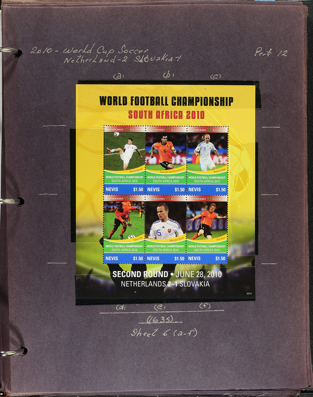 Collection Part B. Lovely mint never hinged collection of Nevis, 2006-2018, containing many hundreds of stamps all in hingeless mounts, on a few hundred well described pages housed in 4 binders. This well-organized collection ranges from Scott #1473/1967, including over 120 souvenir sheets and or sheetlets, noting a few sets and souvenir sheets cataloguing in the $10.00 to $25.00 range each. A nice opportunity for all collectors, including many thematic subjects noting sports, transportation, famous people, animals, butterflies, space, entertainers, and so much more. Our online photos show a small sampling, overall fine to very fine. 2025 Scott US$2,974.00 =