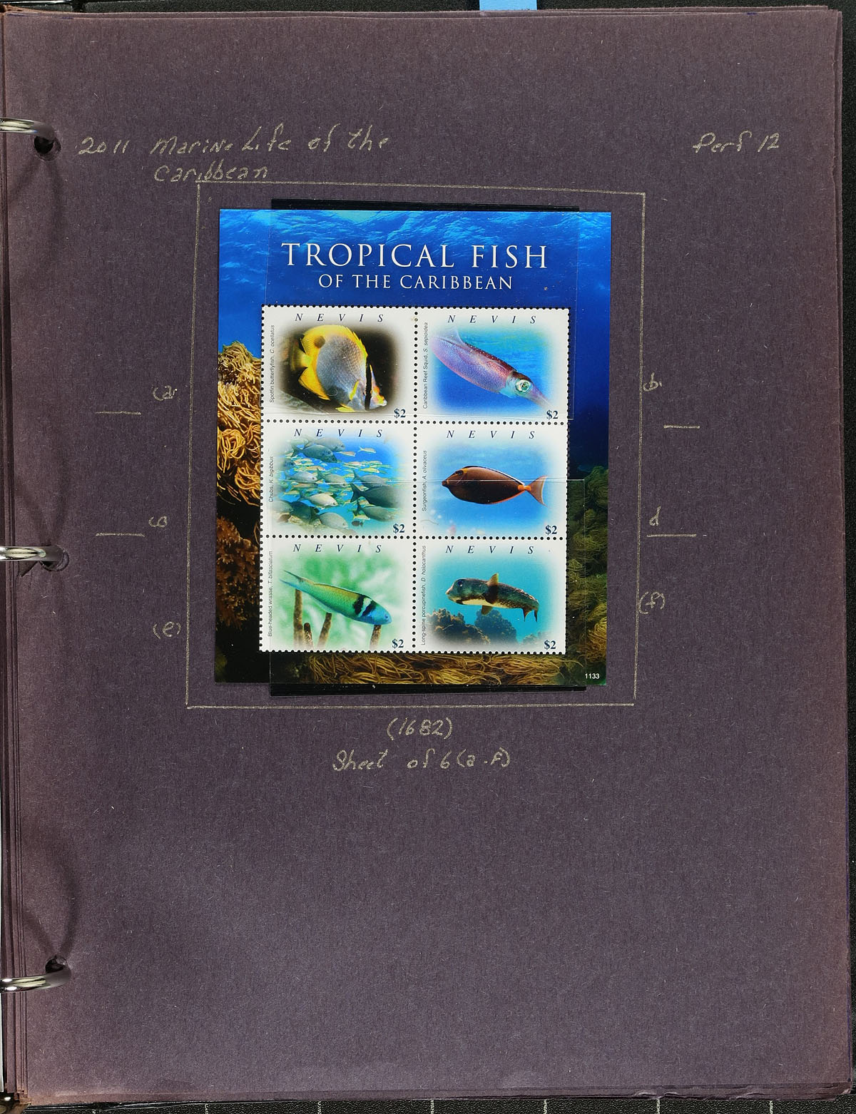 Collection Part B. Lovely mint never hinged collection of Nevis, 2006-2018, containing many hundreds of stamps all in hingeless mounts, on a few hundred well described pages housed in 4 binders. This well-organized collection ranges from Scott #1473/1967, including over 120 souvenir sheets and or sheetlets, noting a few sets and souvenir sheets cataloguing in the $10.00 to $25.00 range each. A nice opportunity for all collectors, including many thematic subjects noting sports, transportation, famous people, animals, butterflies, space, entertainers, and so much more. Our online photos show a small sampling, overall fine to very fine. 2025 Scott US$2,974.00 =