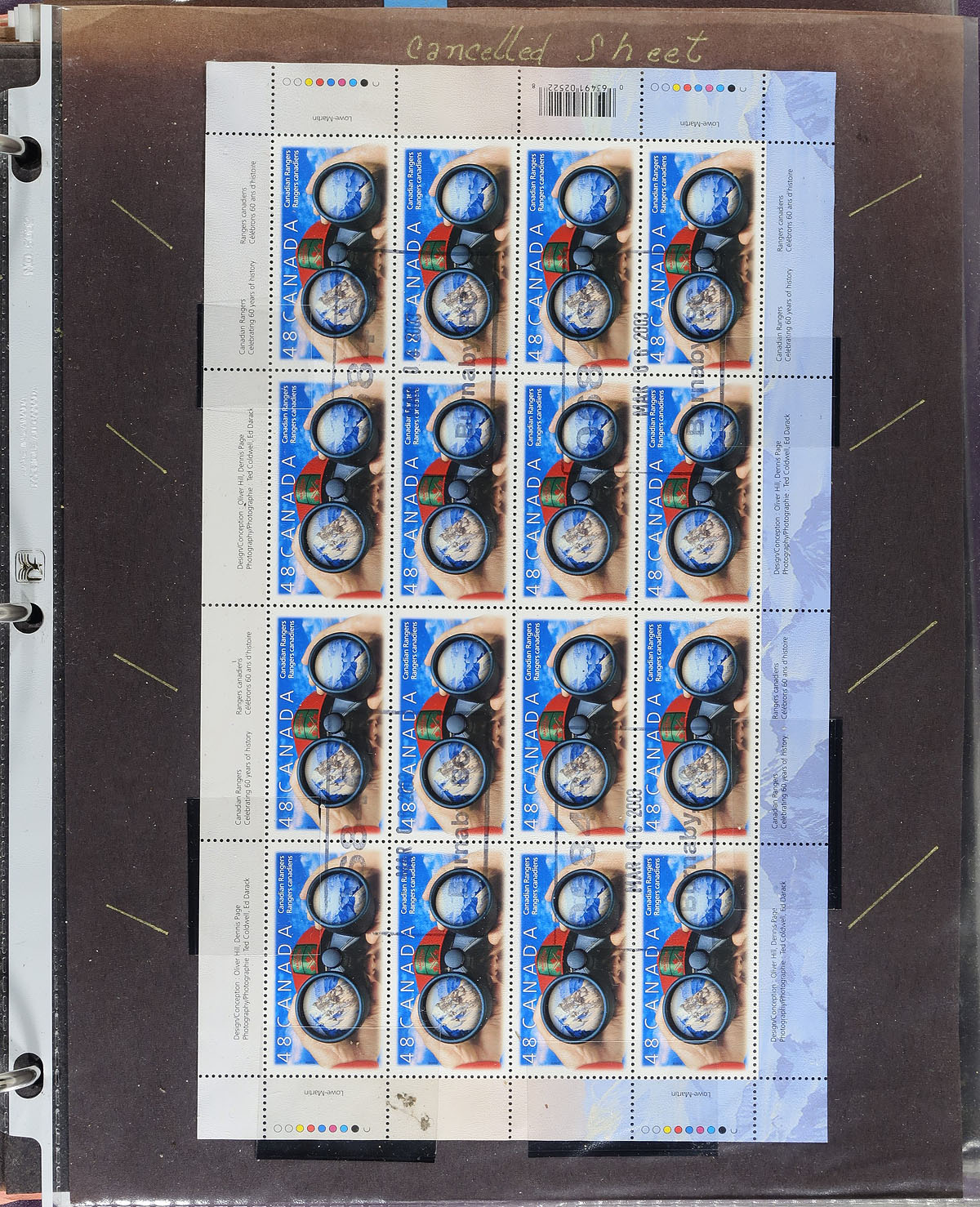 In-depth collection of primarily mint never hinged Canada, from January to June of 2003, covering Unitrade #s 1969-1987, all in hingeless mounts in over 50 well described pages, housed in a thick binder. The collection contains mint and used singles (including booklet stamps), multiples, matched set of plate blocks (including used sets), for most issues, along with a definitive issues, few souvenir sheets and sheetlets (mint and used), booklets (including used booklet panes), and first day covers. We note several match sets cataloguing $10.00 and up. Face value alone totals $188.00. A nice comprehensive collection that would be difficult to duplicate. 2024 Unitrade =