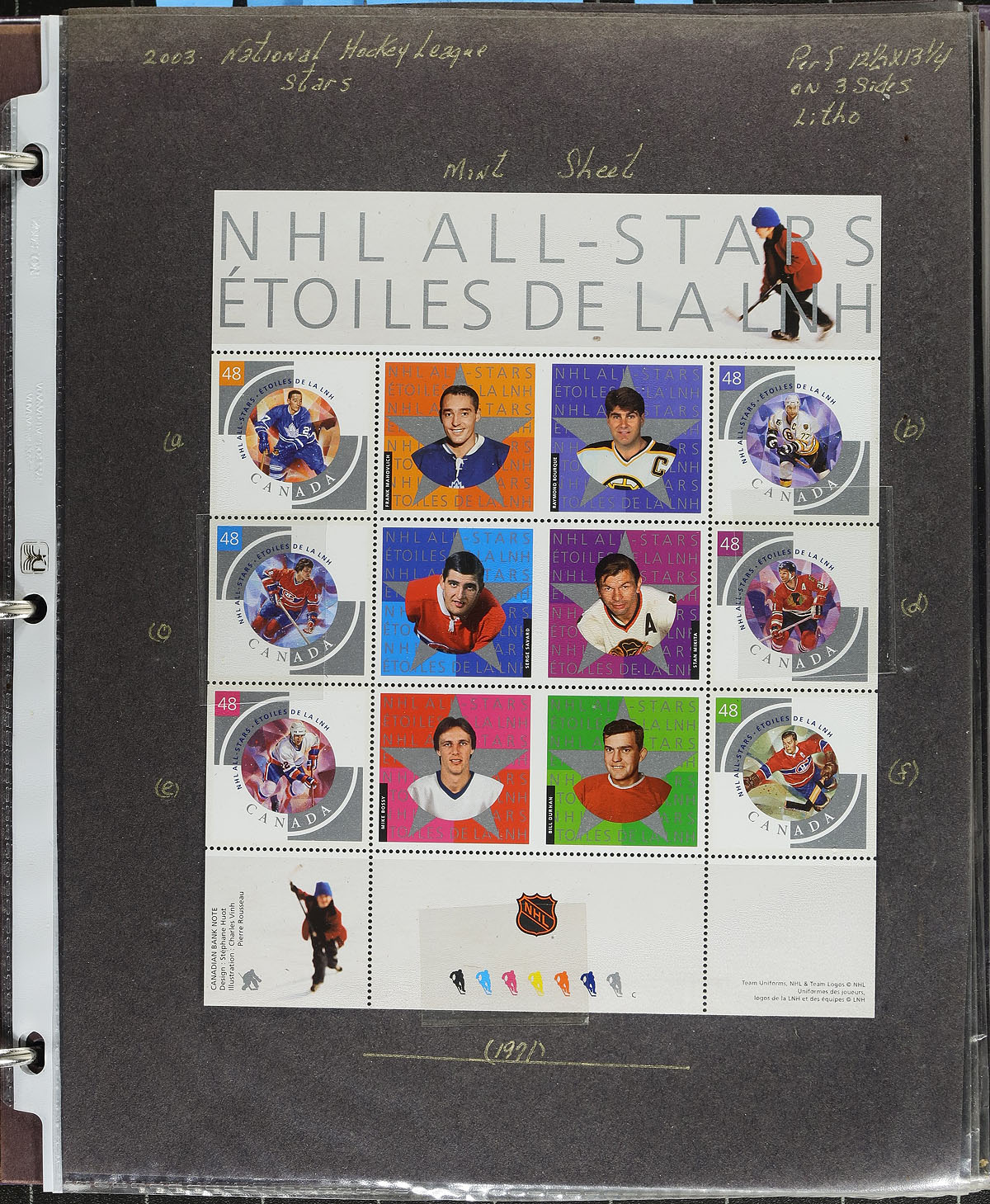 In-depth collection of primarily mint never hinged Canada, from January to June of 2003, covering Unitrade #s 1969-1987, all in hingeless mounts in over 50 well described pages, housed in a thick binder. The collection contains mint and used singles (including booklet stamps), multiples, matched set of plate blocks (including used sets), for most issues, along with a definitive issues, few souvenir sheets and sheetlets (mint and used), booklets (including used booklet panes), and first day covers. We note several match sets cataloguing $10.00 and up. Face value alone totals $188.00. A nice comprehensive collection that would be difficult to duplicate. 2024 Unitrade =