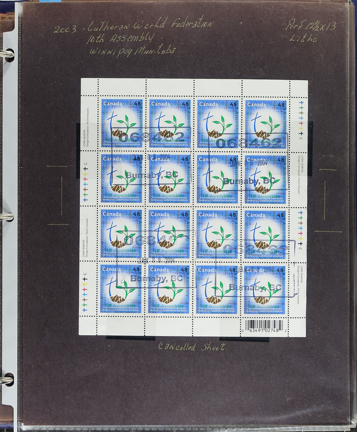 In-depth collection of primarily mint never hinged Canada, from June to December of 2003, covering Unitrade #s 1988-1991, 1992-2014, all in hingeless mounts in over 50 well described pages, housed in a thick binder. The collection contains mint and used singles (including booklet stamps), multiples, matched set of plate blocks (including used sets), for most issues, along with a definitive issues, few souvenir sheets and sheetlets (mint and used), booklets (including used booklet panes), and first day covers. We note several match sets cataloguing $10.00 and up. Face value alone totals $263.00. A nice comprehensive collection that would be difficult to duplicate. 2024 Unitrade =
