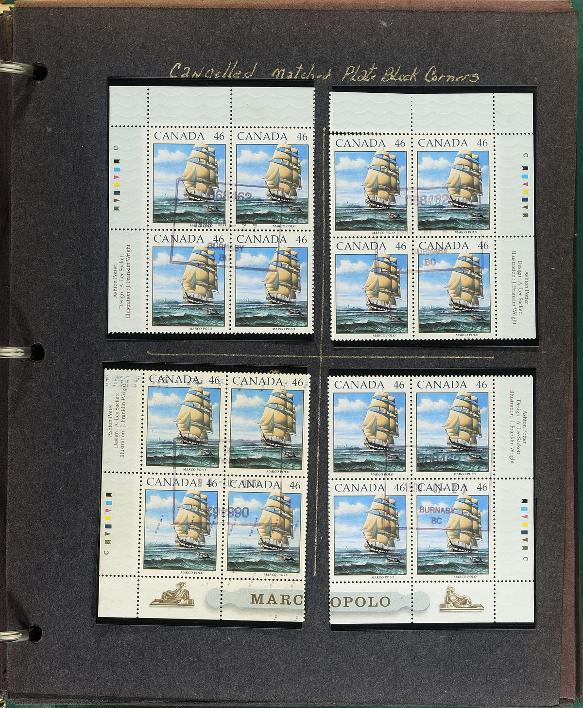In-depth collection of primarily mint never hinged Canada, from January to June of 1999, covering Unitrade #s 1767-1799 all in hingeless mounts in over 50 well described pages, housed in a thick binder. The collection contains mint and used singles (including booklet stamps), multiples, matched set of plate blocks (including used sets), for most issues, along with a few souvenir sheets (mint and used), sheetlets, booklets (including used booklet panes), and first day covers. We note several match sets cataloguing $10.00 and up. Face value alone totals $250.00. A nice comprehensive collection that would be difficult to duplicate. 2024 Unitrade =