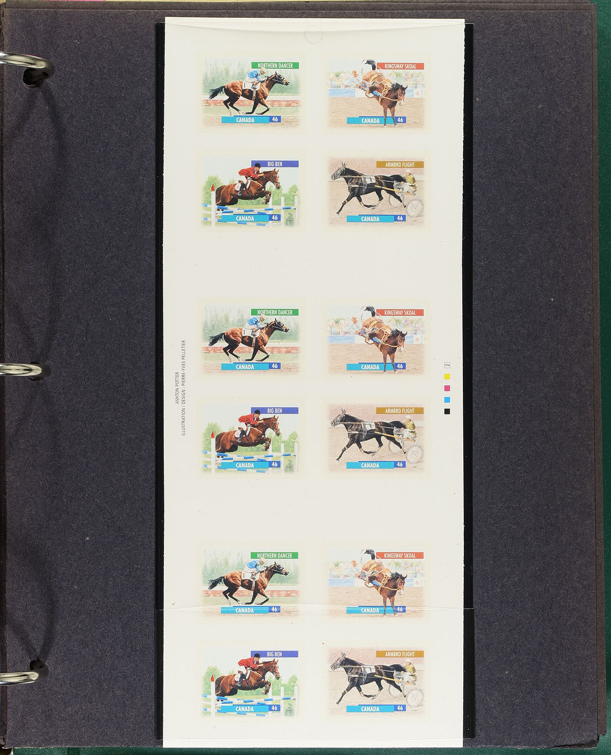 In-depth collection of primarily mint never hinged Canada, from January to June of 1999, covering Unitrade #s 1767-1799 all in hingeless mounts in over 50 well described pages, housed in a thick binder. The collection contains mint and used singles (including booklet stamps), multiples, matched set of plate blocks (including used sets), for most issues, along with a few souvenir sheets (mint and used), sheetlets, booklets (including used booklet panes), and first day covers. We note several match sets cataloguing $10.00 and up. Face value alone totals $250.00. A nice comprehensive collection that would be difficult to duplicate. 2024 Unitrade =