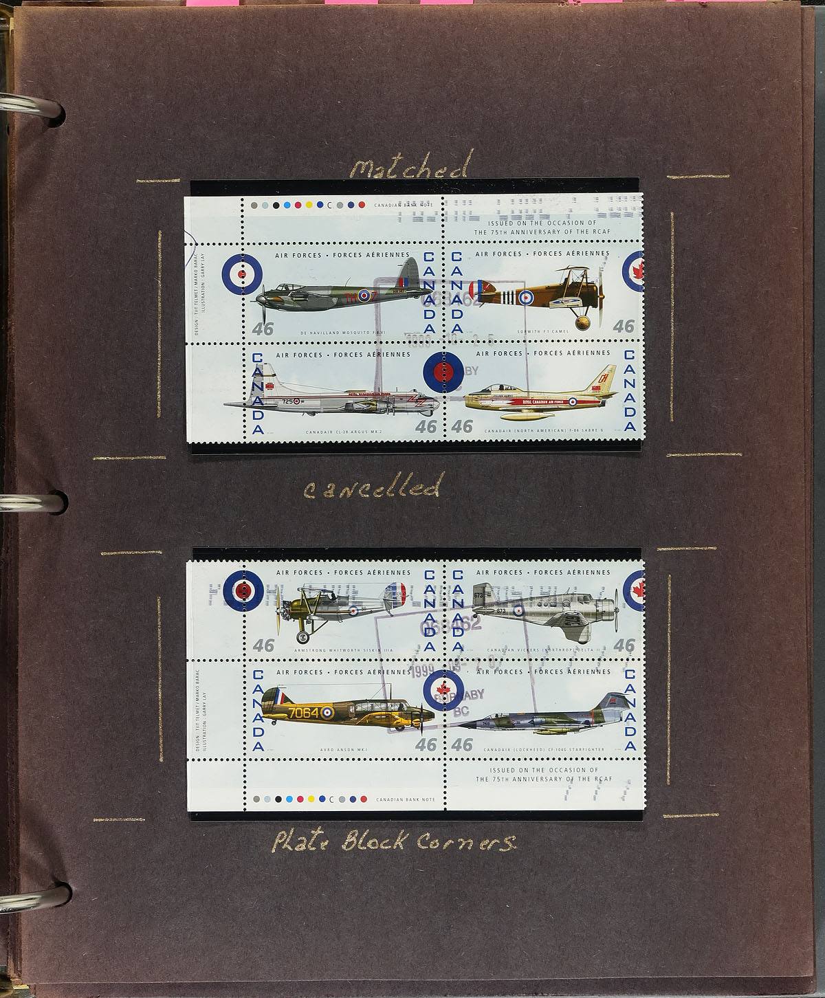 In-depth collection of primarily mint never hinged Canada, from July to December of 1999, covering Unitrade #s 1800-1817 all in hingeless mounts in over 50 well described pages, housed in a binder. The collection contains mint and used singles (including booklet stamps), multiples, matched set of plate blocks (including used sets), for most issues, along with a few souvenir sheets (mint and used), sheetlets, booklets (including used booklet panes), and first day covers. We note several match sets cataloguing $10.00 and up. Face value alone totals $255.00. A nice comprehensive collection that would be difficult to duplicate. 2024 Unitrade =