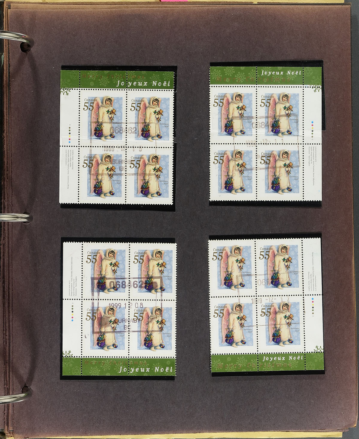 In-depth collection of primarily mint never hinged Canada, from July to December of 1999, covering Unitrade #s 1800-1817 all in hingeless mounts in over 50 well described pages, housed in a binder. The collection contains mint and used singles (including booklet stamps), multiples, matched set of plate blocks (including used sets), for most issues, along with a few souvenir sheets (mint and used), sheetlets, booklets (including used booklet panes), and first day covers. We note several match sets cataloguing $10.00 and up. Face value alone totals $255.00. A nice comprehensive collection that would be difficult to duplicate. 2024 Unitrade =
